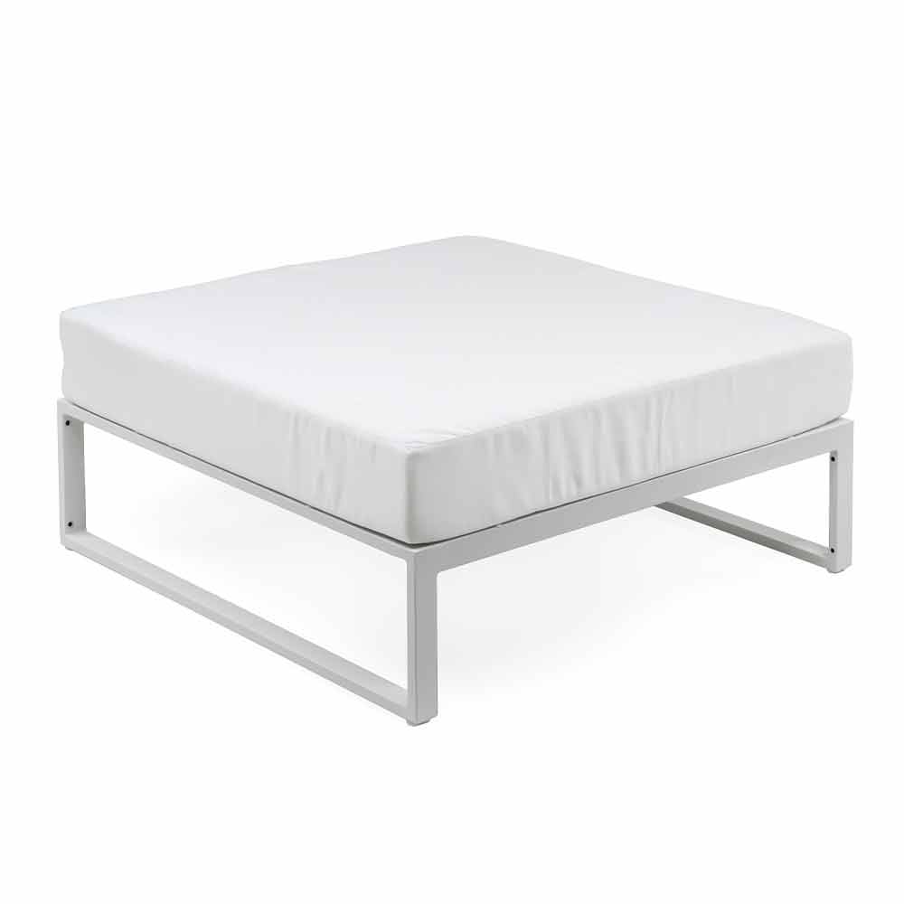 Pouf carré pour le salon extérieur avec structure en aluminium en 3 finitions et coussin en tissu blanc, design de luxe.