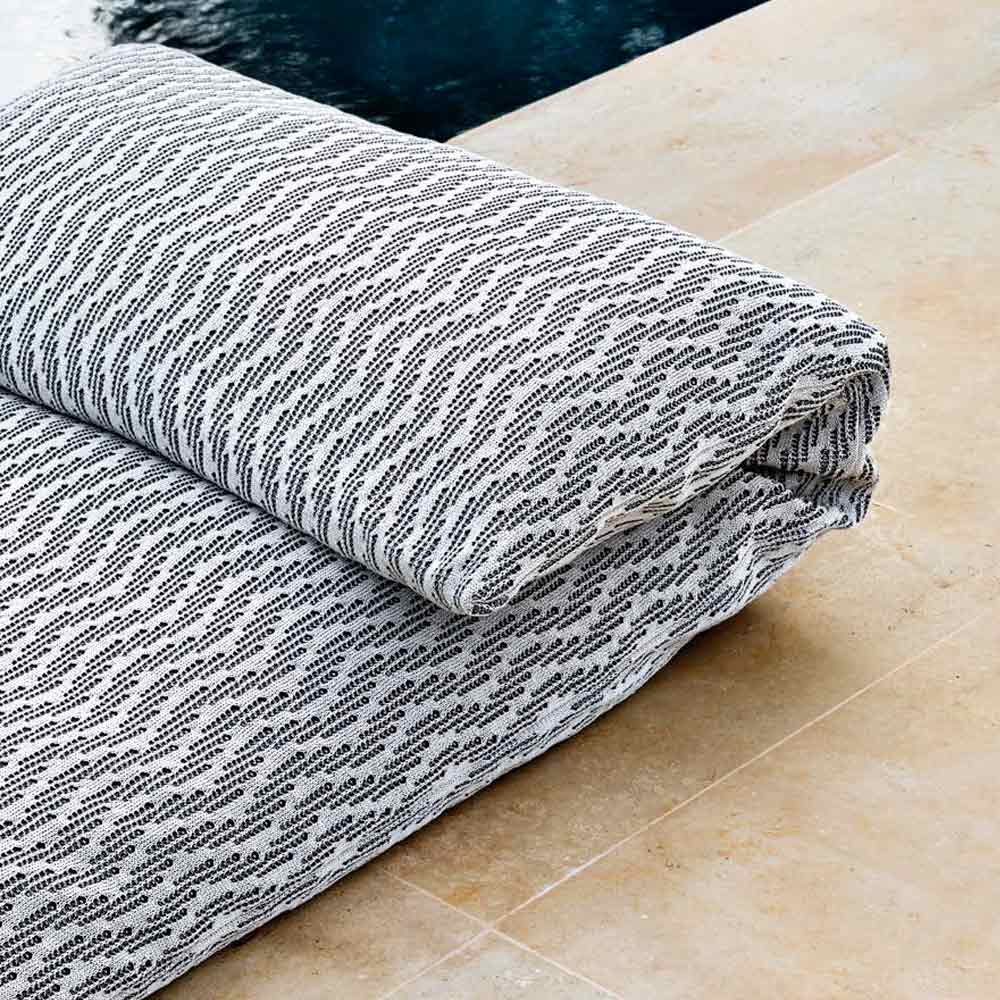 Antibactérien, totalement recyclable et résistant aux rayons UV, tissu avec trame en maille réalisé en exclusivité avec rembourrage en mousse recyclée contenue à l’intérieur d’un sac de pluie.