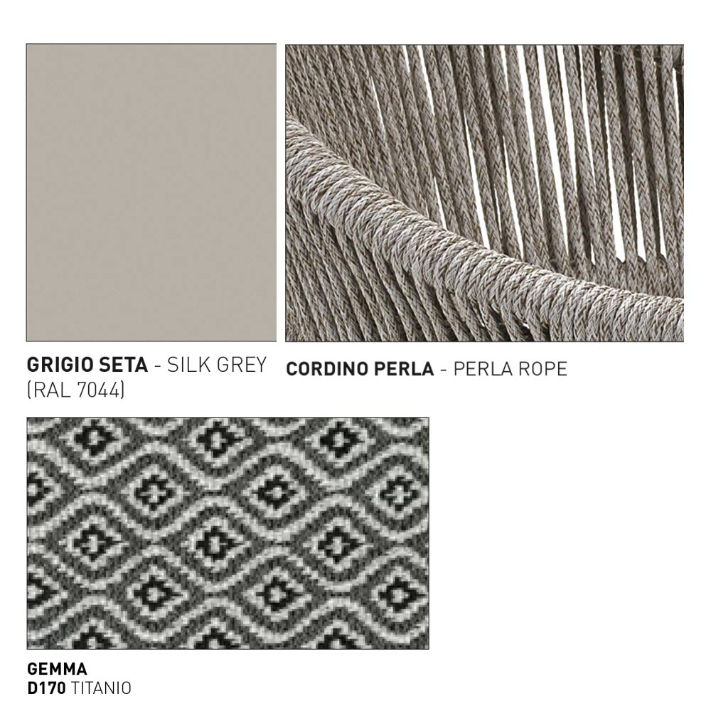 Pouf de jardin composé d'un cadre en aluminium enduit de poudre avec une finition gris soie, de fibres tissées à la main avec une finition perlée et d'un siège avec rembourrage . Un meuble pour espaces extérieurs ou intérieurs capable de compléter le confort et le style de l'environnement environnant pour un résultat accueillant et une esthétique contemporaine .