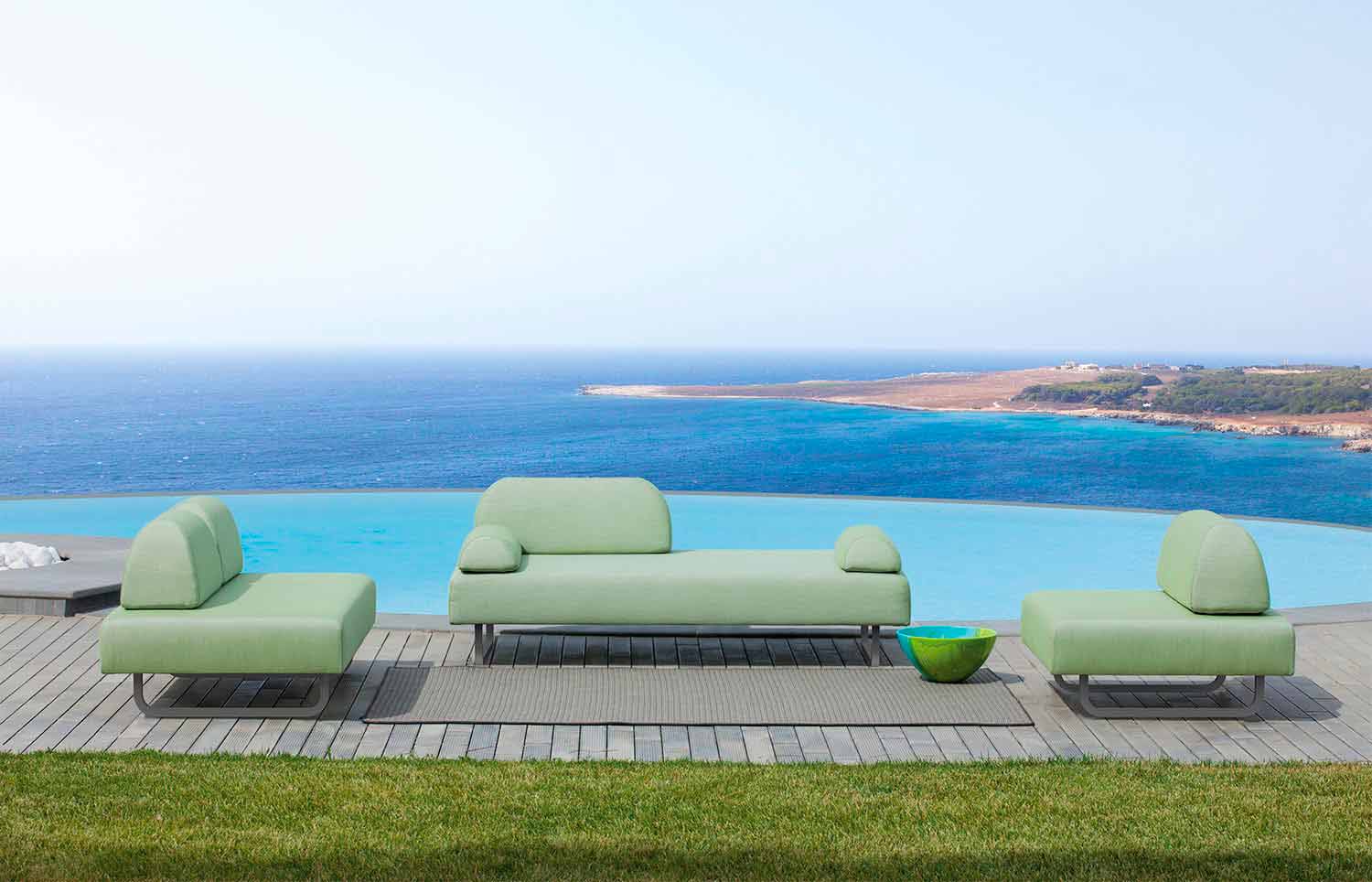 Pouf carré 90x90 cm pour extérieur design en fer galvanisé thermolaqué et tissu acrylique 100% teinté Fabriqué en Italie.