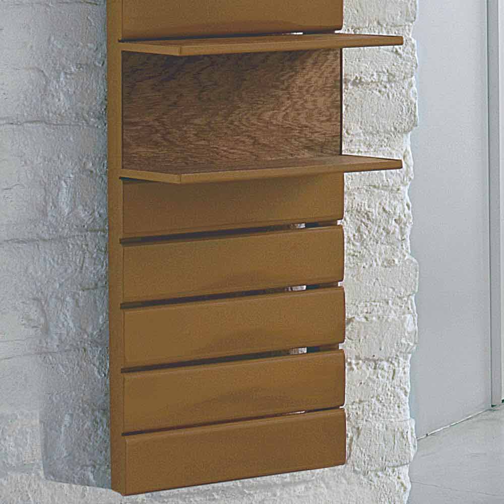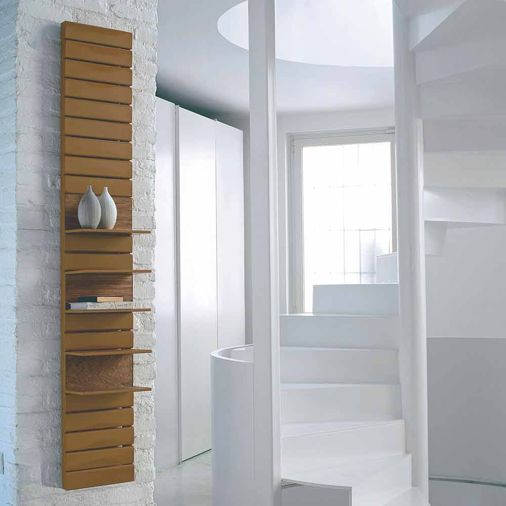 Radiateur hydraulique en acier avec étagères en chêne Utility de Scirocco H Radiateur hydraulique, pratique et fonctionnel au design linéaire, chauffe et organise chaque environnement dans lequel il est inséré. Radiateur vertical en acier coloré, complet d'étagères (comme indiqué sur la photo) avec dossier-étagères et plateau en chêne naturel.