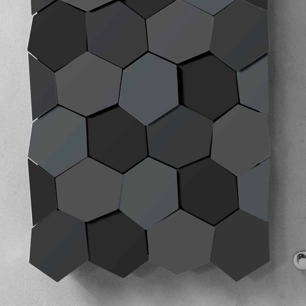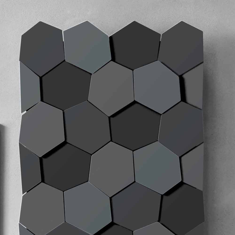 Radiateur mural vertical eau chaude de conception moderne en acier avec hexagones, fabriqué en Italie.