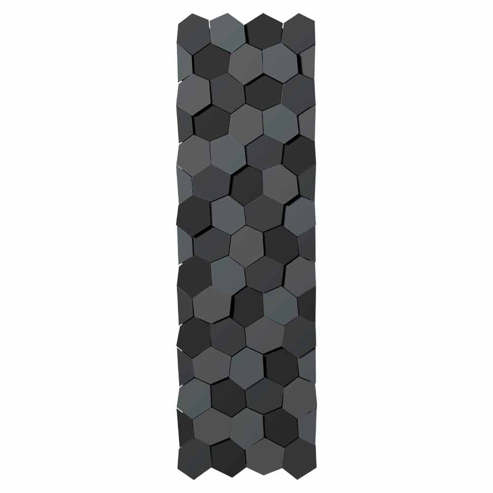 plaque radiante eau chaude a un design moderne caractérisé par des plaques hexagonales modulaires et superposées qui créent une atmosphère naturelle et suggestive.