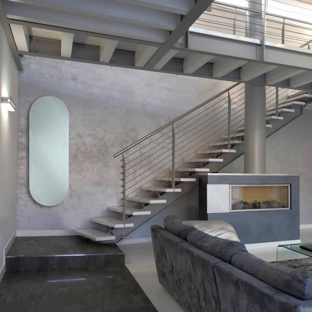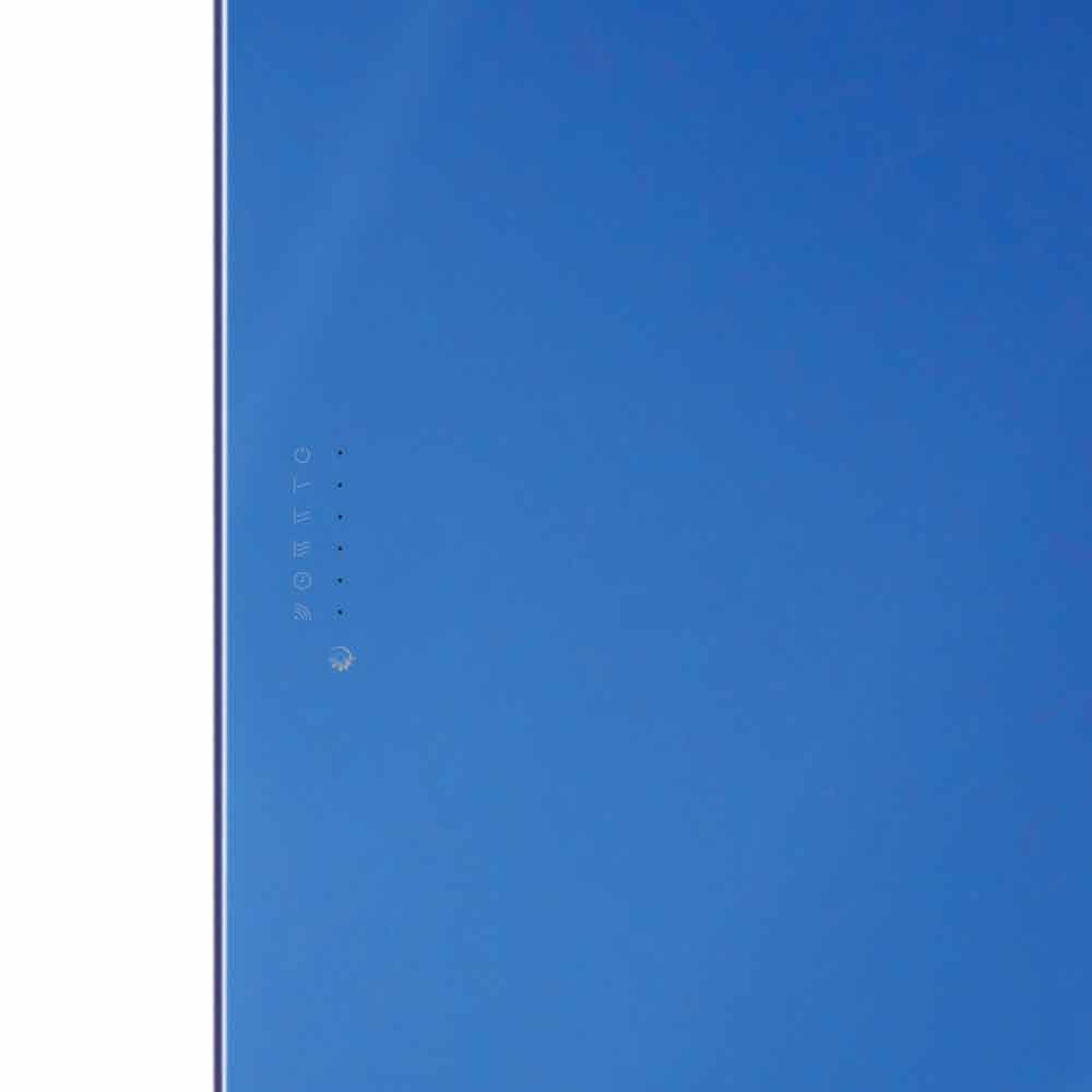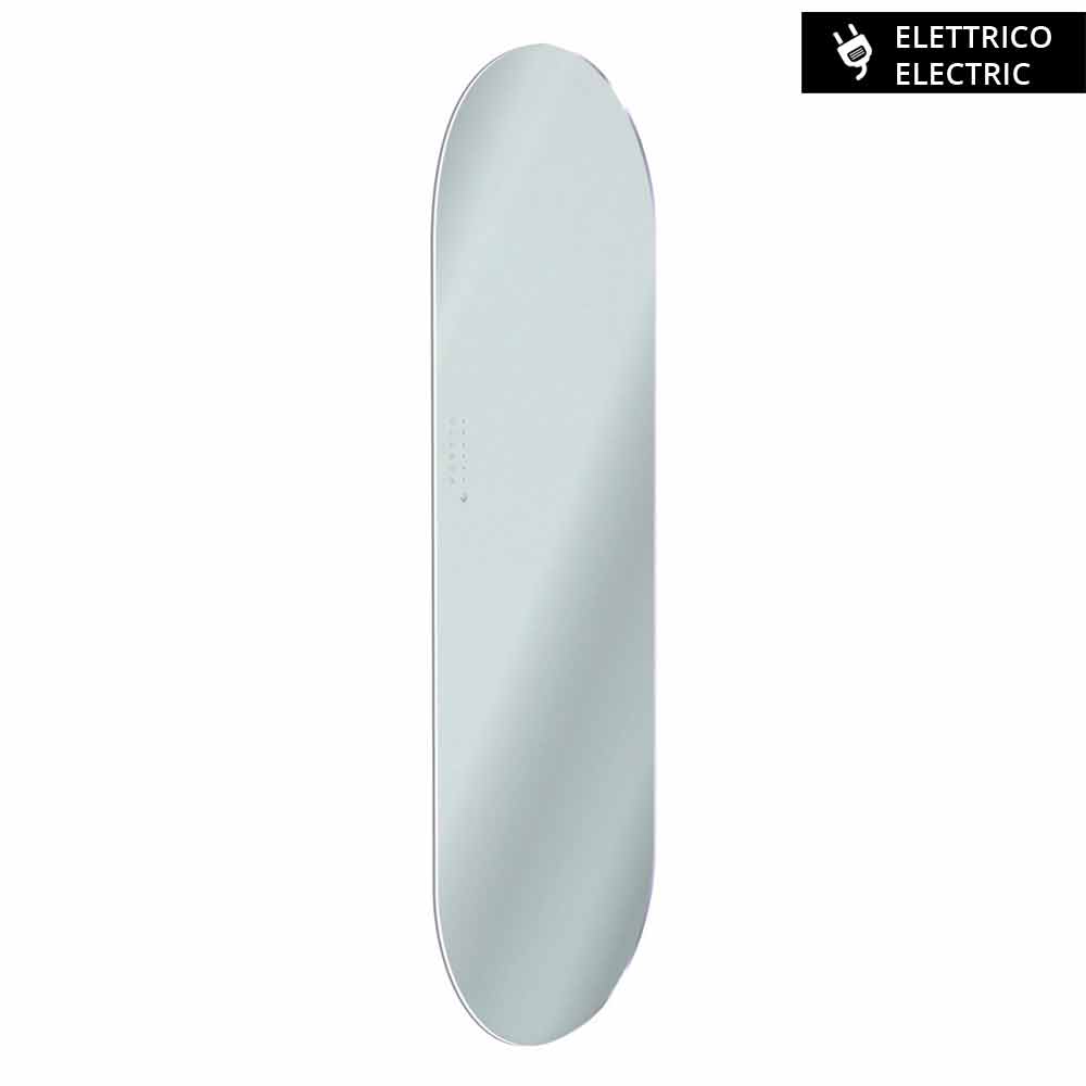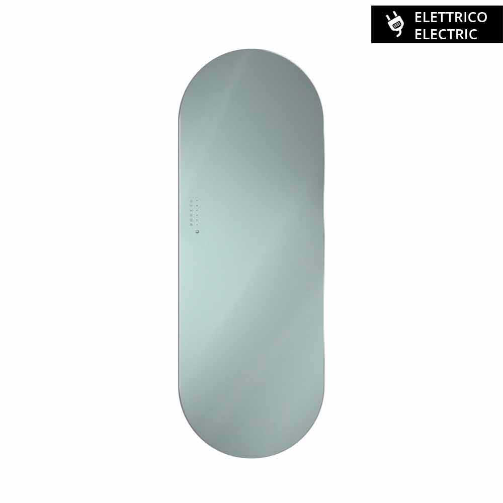 Composé d'un double verre trempé, qui garantit, en cas de bris, des performances de sécurité au niveau 1 B1 selon la norme européenne UNI 12600. La construction ainsi formée garantit également un niveau d'isolation de l'électronique en classe 2 et un niveau de protection IP. 55 garantissant ainsi une sécurité maximale même dans des environnements humides, tels que salles de bains, piscines, saunas, etc.