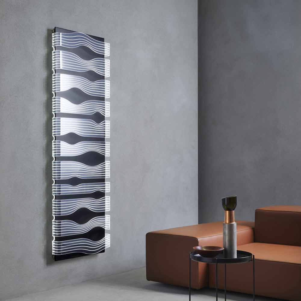 Radiateur électrique au design vertical moderne avec LED pour salon ou salle de bain, fabriqué en Italie.
