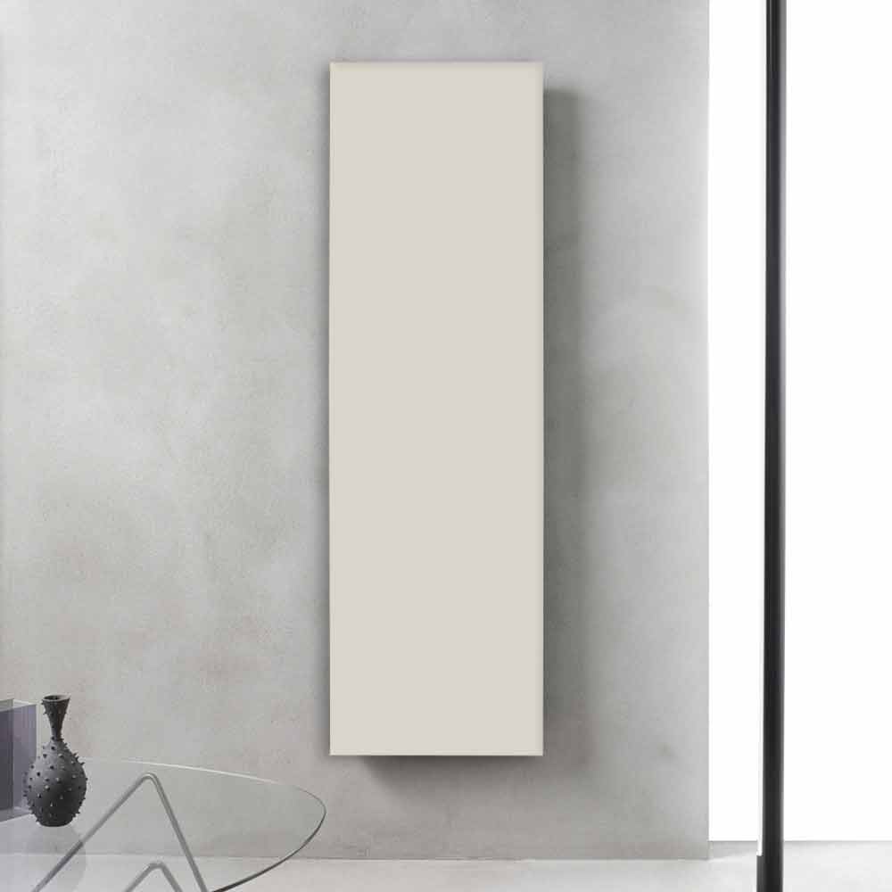 Radiateur mural électrique vertical de design moderne en acier blanc grisâtre fabriqué en Italie.