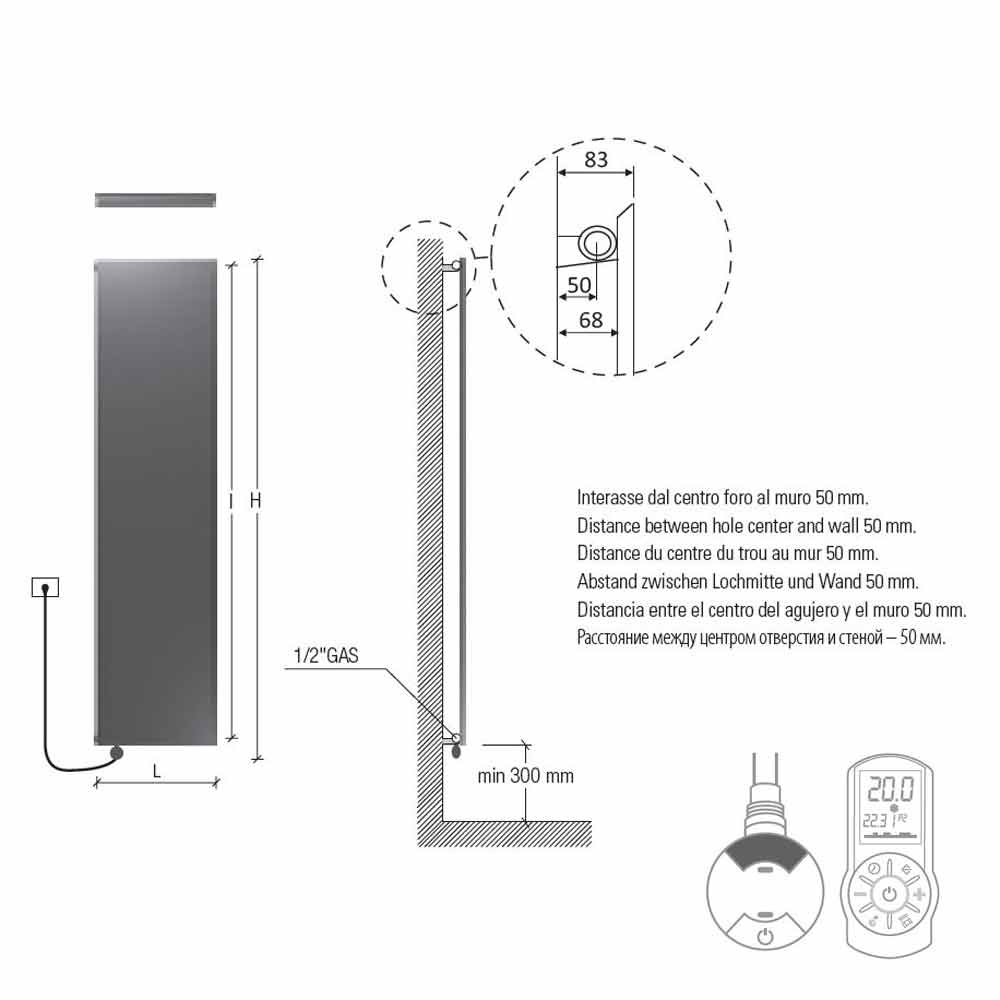 Le thermostat de 110 mm doit être ajouté à la hauteur. Boîtier thermostatique blanc en standard pour radiateurs blancs; chrome pour les radiateurs colorés et finitions en acier inoxydable. Alimentation monophasée 230 volts.
