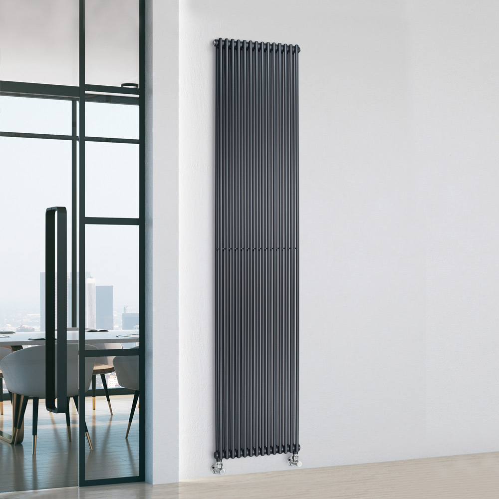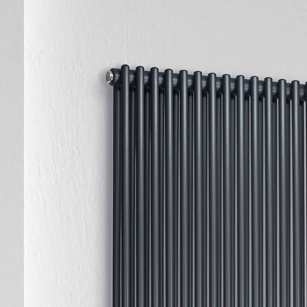 Radiateur hydraulique en acier au carbone finition GRMS composé d' une double série d'éléments verticaux de diamètre 1,6 cm soudés sur des collecteurs horizontaux de diamètre 3,5 cm. Entièrement fabriqué en Italie avec kit de fixation murale, purgeur et bouchon aveugle inclus . Chaque étape de production est réalisée dans une usine près de Trévise, à quelques kilomètres de Venise où la qualité est l'objectif constant et poursuivi. La qualité est synonyme d' une extrême attention aux détails et du choix des matériaux les plus fiables . Ainsi est né ce radiateur au design pur et à la fonctionnalité dans sa forme la plus élevée.