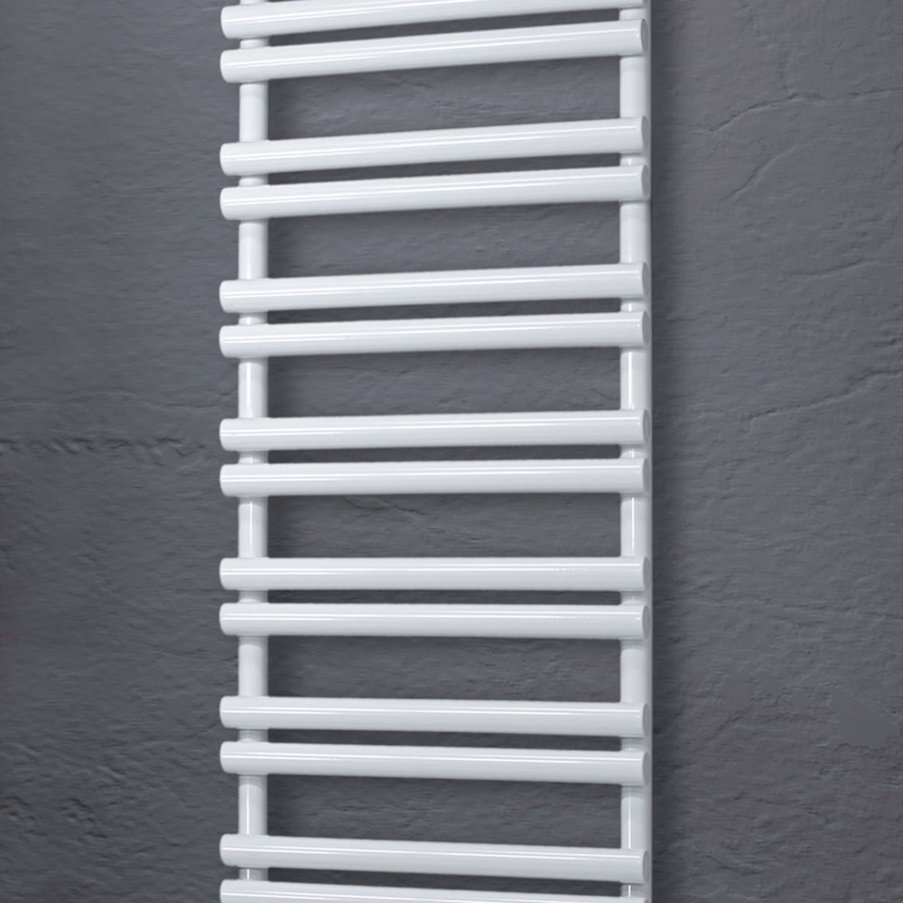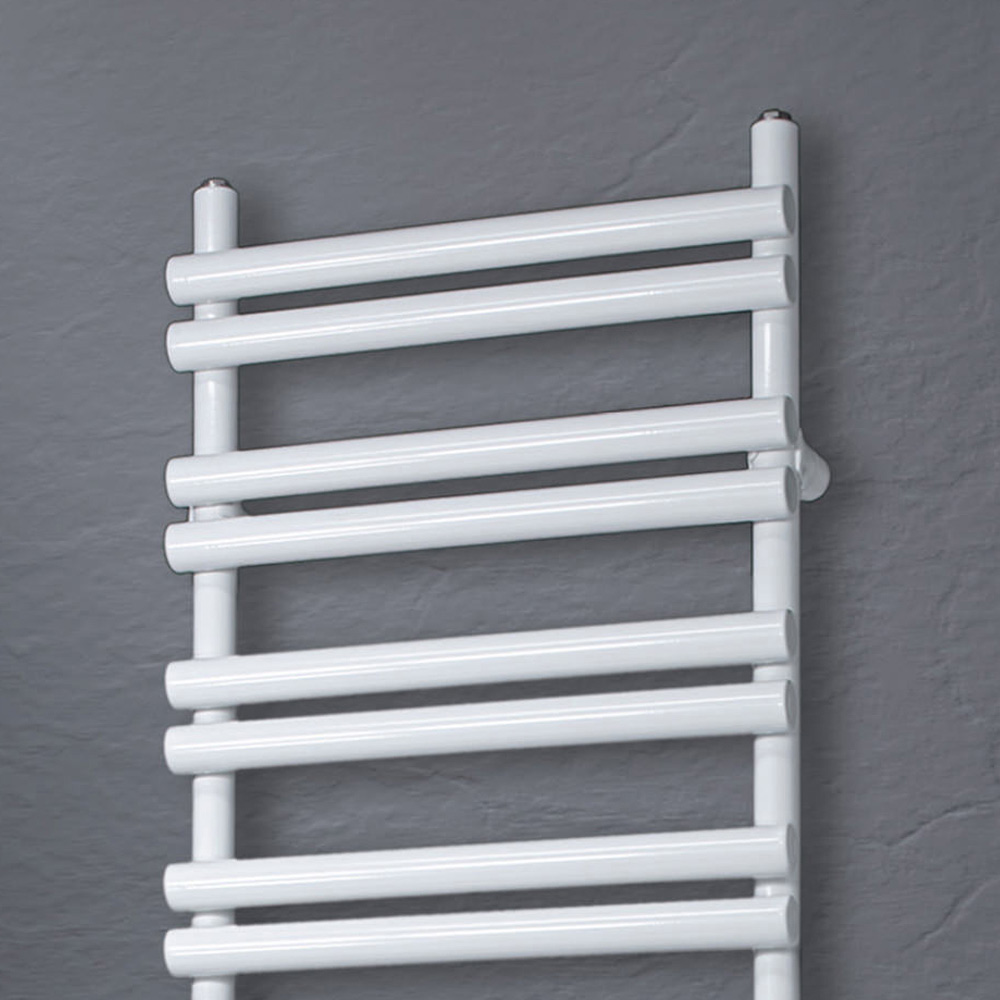 Sèche-serviettes hydraulique en acier au carbonefinition blanc pur brillant composé d'une série d' éléments horizontaux d'un diamètre de 3,5 cm soudés sur des collecteurs verticaux d'un diamètre de 3,5 cm, entièrement fabriqué en Italie avec kit de fixation murale, vanne de ventilation et bouchon borgne inclus . Le professionnalisme, la connaissance et la recherche de l'innovation sont les valeurs qui ont été poursuivies pour créer ce produit dans une usine de Trévise, à quelques kilomètres de Venise, pour garantir un produit de qualité 100% Made in Italy. Dans cet élément , design et fonctionnalité se rencontrent pour offrir un meuble non seulement beau mais aussi utilisable et efficace.