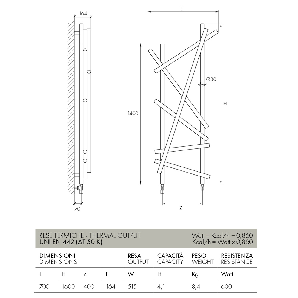 Fabriqué en acier robuste et durable , ce radiateur est conçu pour assurer efficacité et durabilité. Il est parfait non seulement pour les salles de bains et les spas domestiques, mais aussi pour les salons ou les entrées, où le design peut être apprécié comme partie intégrante du décor de la pièce.