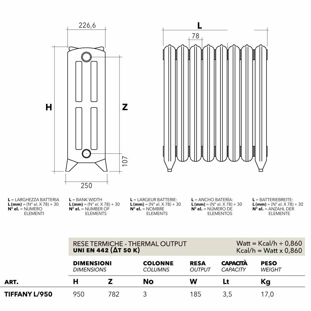 Attention : Il est possible de personnaliser le nombre d'éléments, demander un devis à : cliente@viadurini.it NB : indiquer le type de tube (cuivre ou multicouche) et le diamètre lors de la commande. A défaut de dispositions, le raccord de tuyauterie en cuivre de 12 mm sera fourni.https://www.viadurini.fr//data/prod/img/radiatore-idraulico-retro-in-ghisa-a-3-colonne-tiffany-by-scirocco-h-2.jpg3396.39InStockRadiateursScirocco H000.02017-08-31 09:13:29Made in Italy
