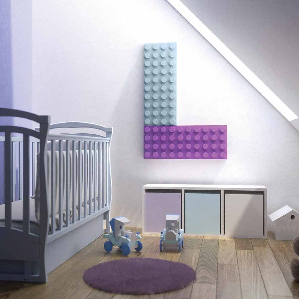 Radiateur hydraulique lego au design moderne Brick par Scirocco H Radiateur coloré au style moderne et amusant, dans la version hydraulique. Un projet inspiré d'une icône affective partagée par tous. Plusieurs combinaisons de couleurs pour les éléments modulaires horizontaux et verticaux. Comme dans un jeu de construction, les éléments se combinent et se placent côte à côte en fonction de l'espace disponible et de la puissance thermique nécessaire.