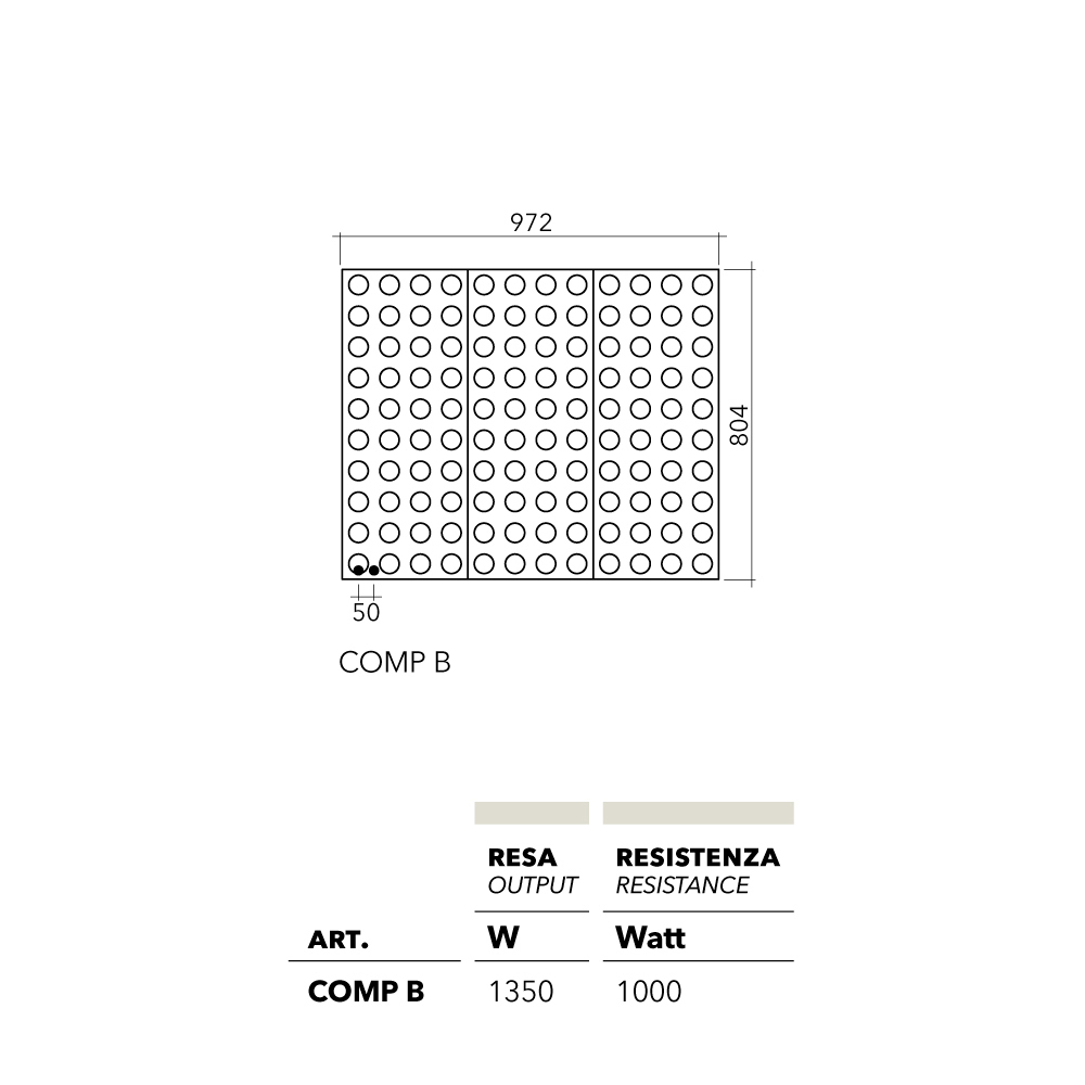 Matériel: - Noyau chauffant constitué d'une batterie à ailettes en aluminium et de tuyaux de retour en cuivre - Couvercle en tôle d'acier préformée