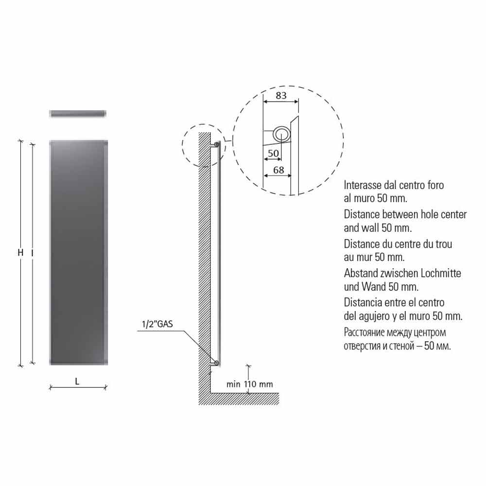 Radiateur design à installation murale verticale en acier, fabriqué en Italie.