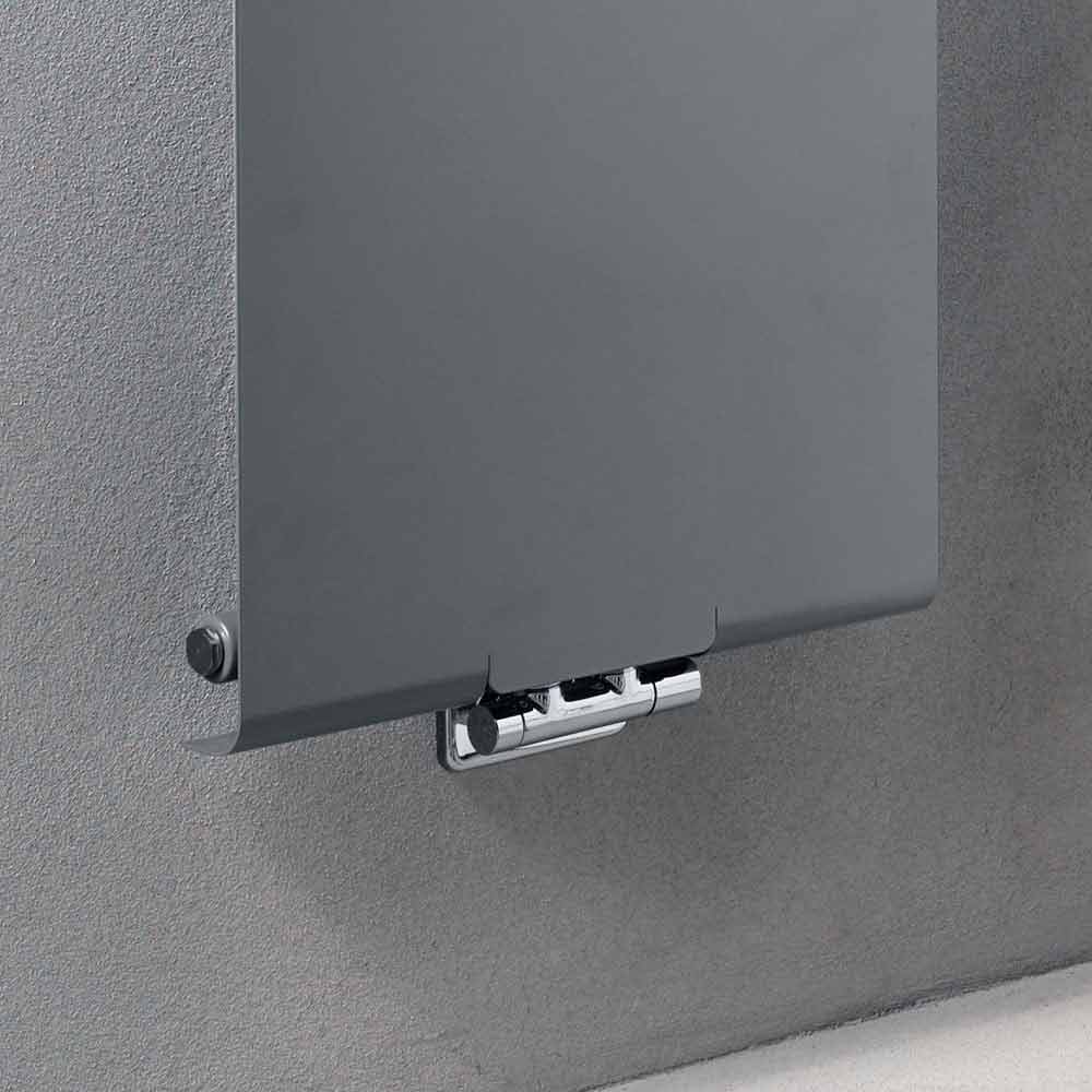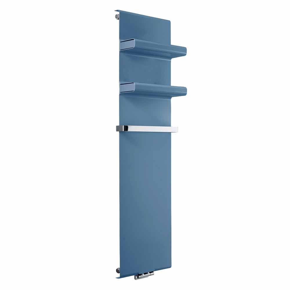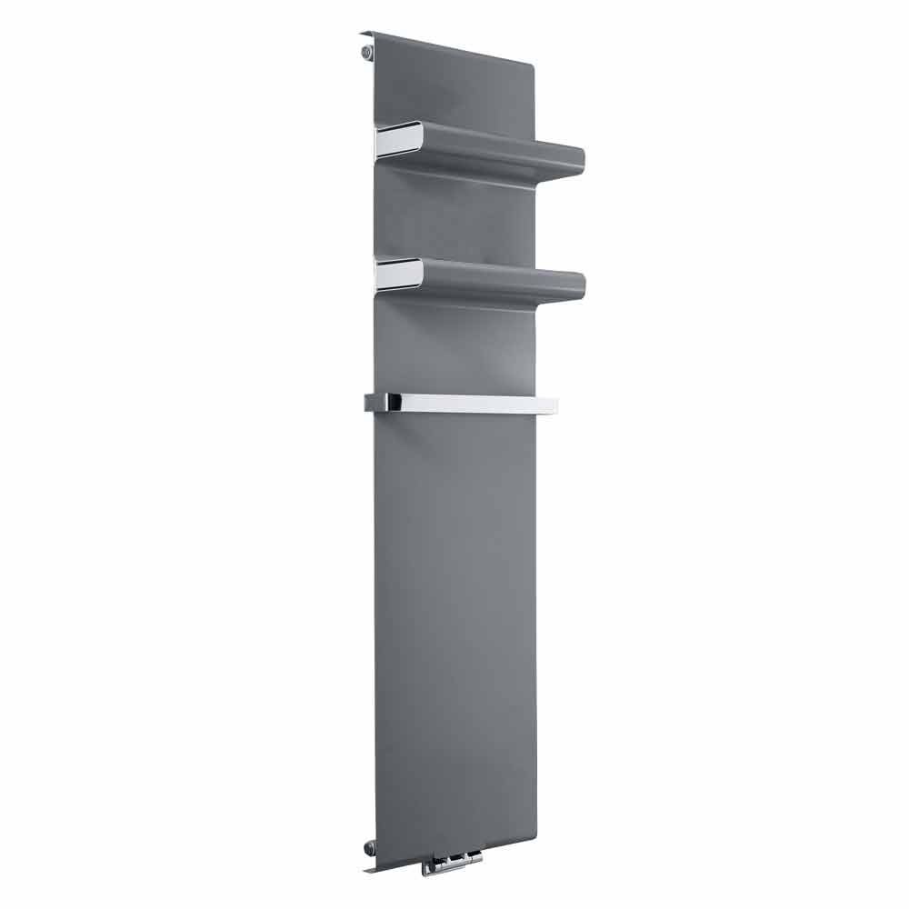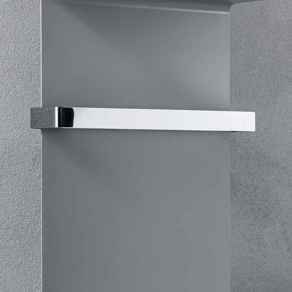 plaque radiante hydraulique présente un design moderne et minimal avec des étagères intégrées pratiques et élégantes avec couvercle inclus et un porte-serviettes chromé, qui prolonge la largeur du radiateur de 4 cm.