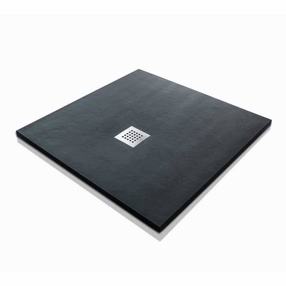 Receveur de douche carré moderne 80x80 en résine effet pierre et acier.
