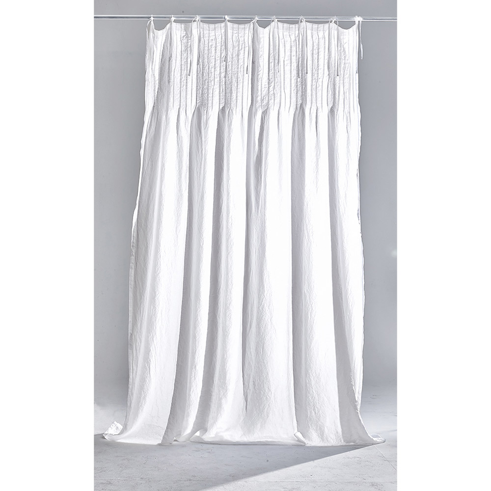 rideau en lin blanc clair avec avec côtes en haut et laçage avec lacets. Légèreté , liberté,
