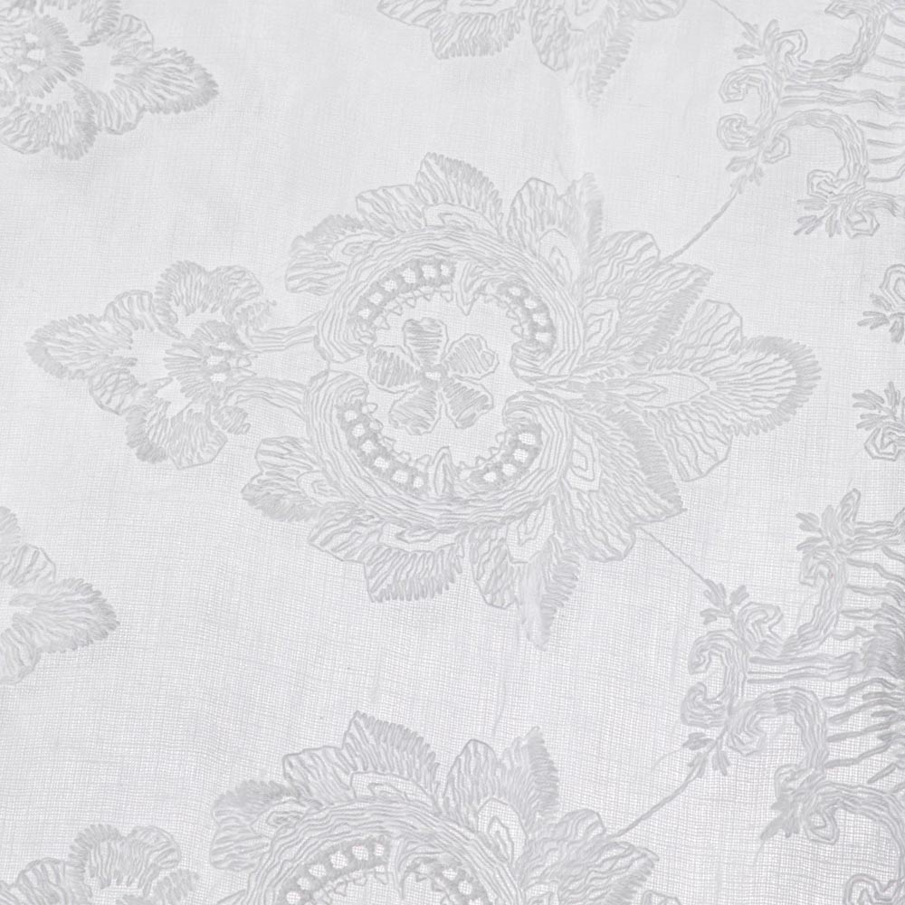 Rideau en lin et organza blanc avec broderie centrale verticale, prédisposition pour tringle, qualité artisanale made in Italy.