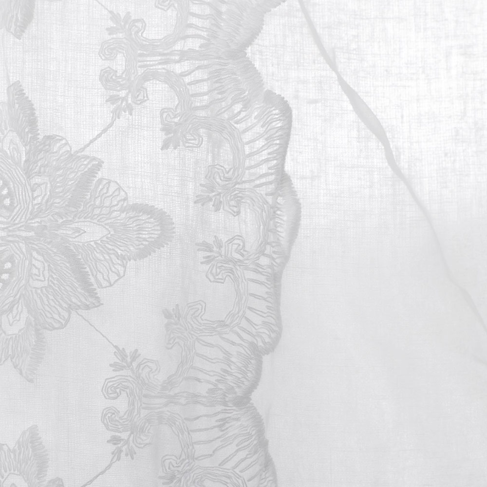 rideau en lin blanc clair avec organza et broderie verticale au milieu et prédisposition pour la tige en haut.