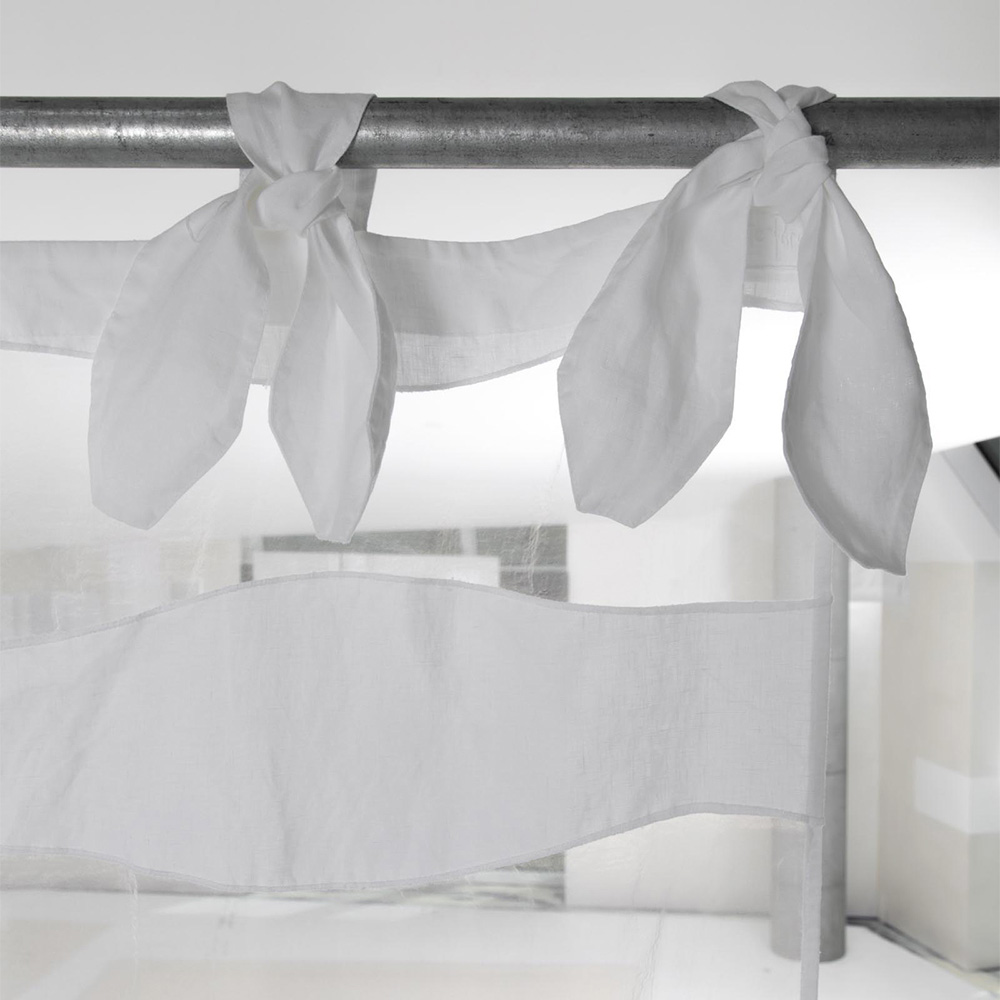 rideau en lin blanc clair avec broderie en organza et vague, laçage pour tige en haut. Légèreté , liberté,