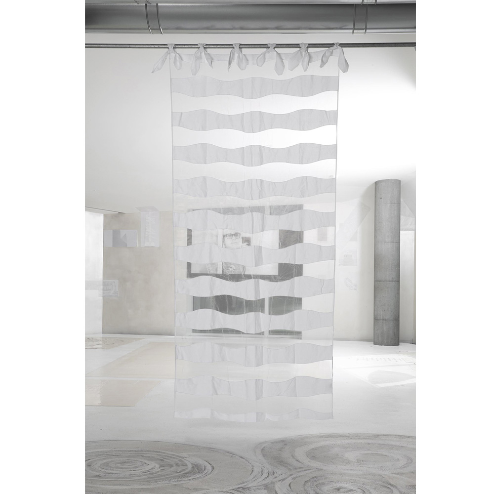 Rideau en lin et organza blanc avec broderie vague et laçage, qualité artisanale made in Italy.