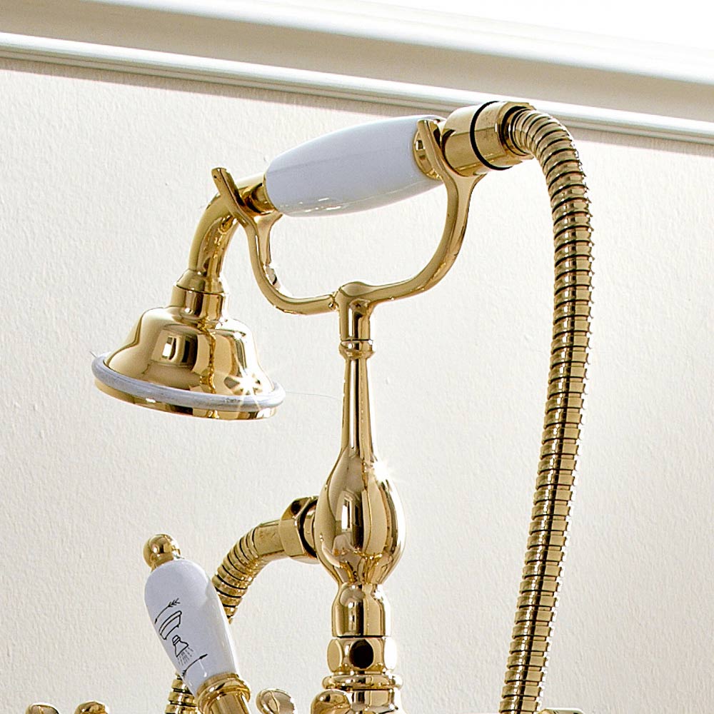 La baignoire sur pieds classique en laiton avec douchette, de haute qualité, fabriquée en Italie.