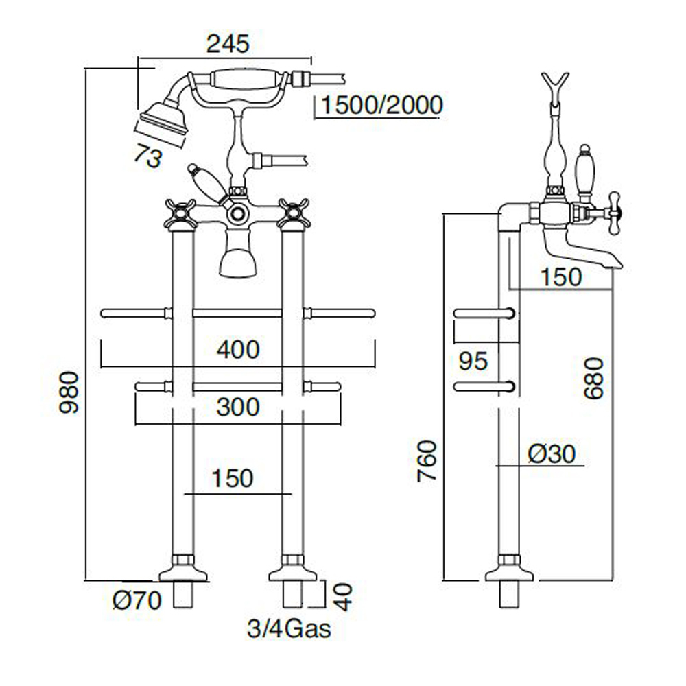 ensemble de baignoire sur pied avec porte-serviettes, douchette et flexible è entièrement