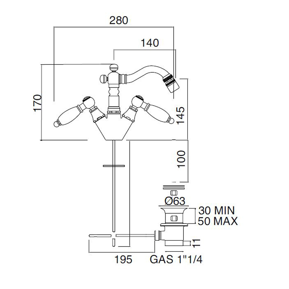 Robinet de bidet monotrou en laiton, de haute qualité, fabriqué en Italie.