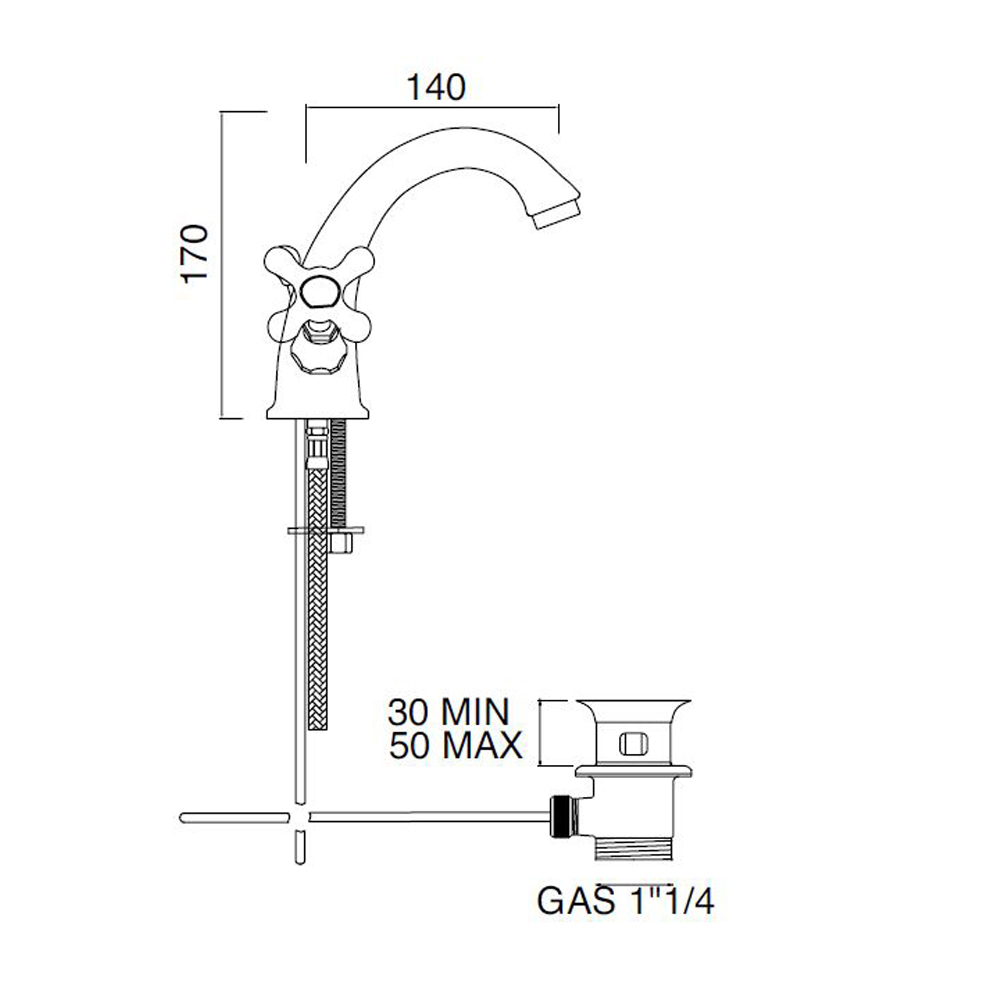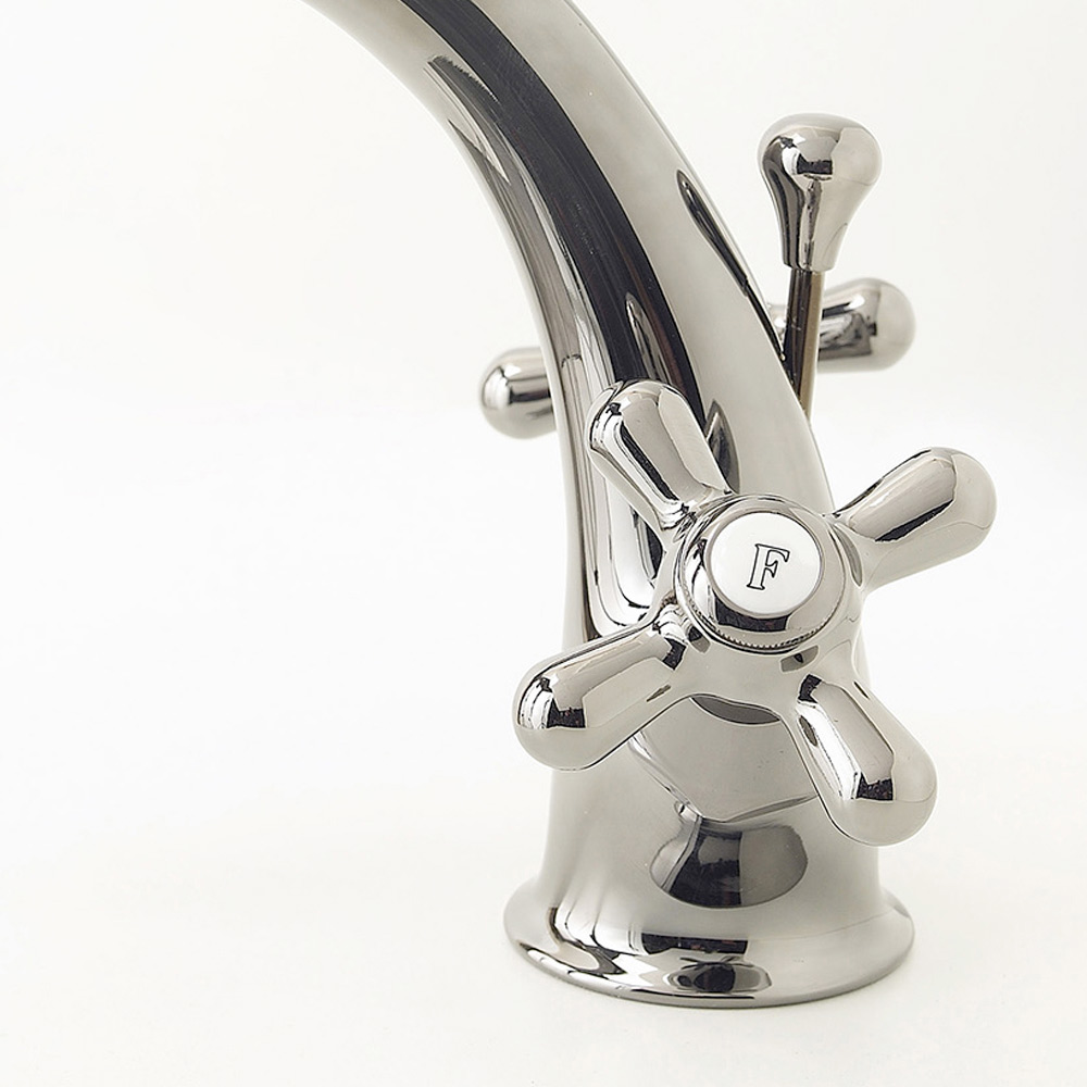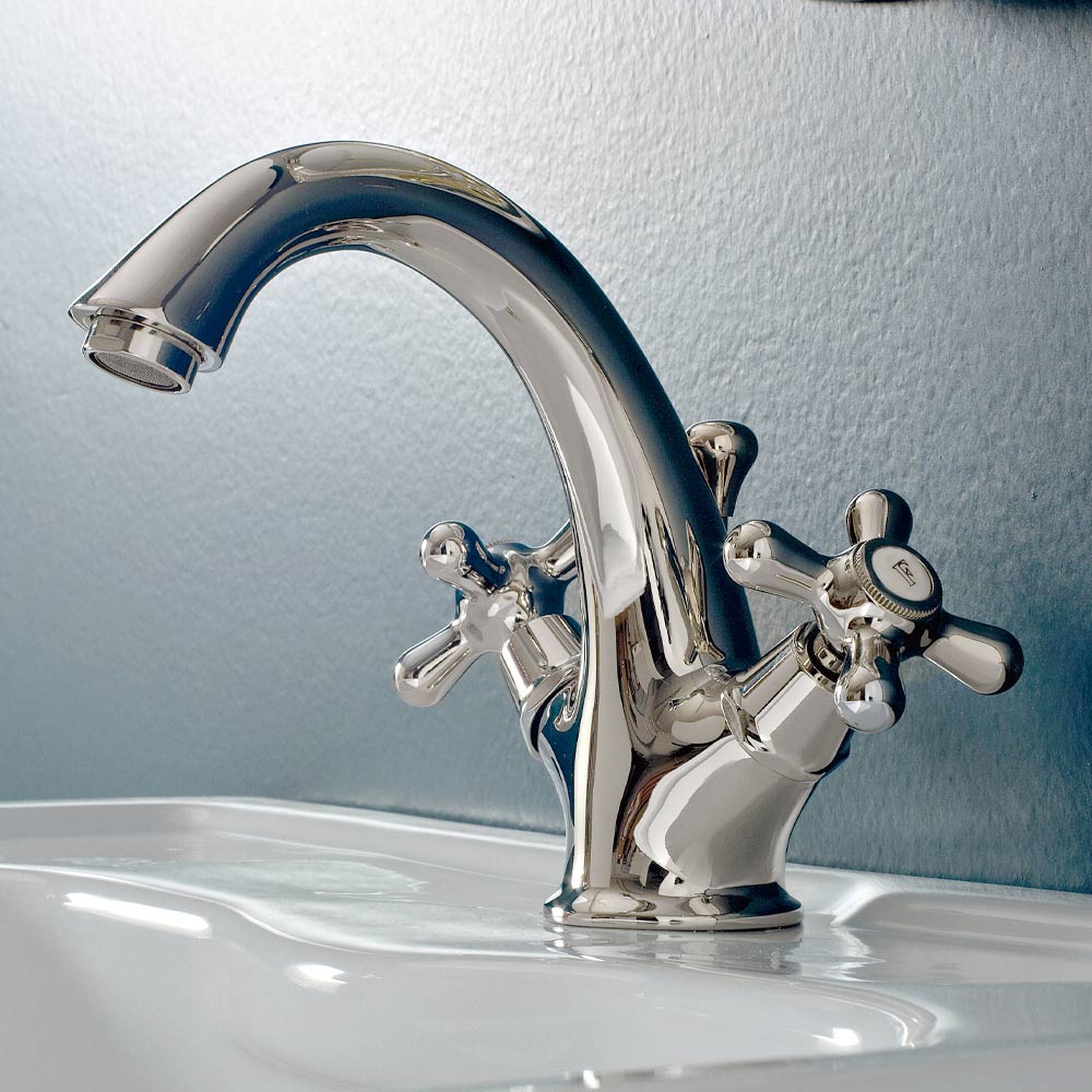 Robinet de lavabo monotrou avec vidage style classique en laiton, haute qualité made in Italy.