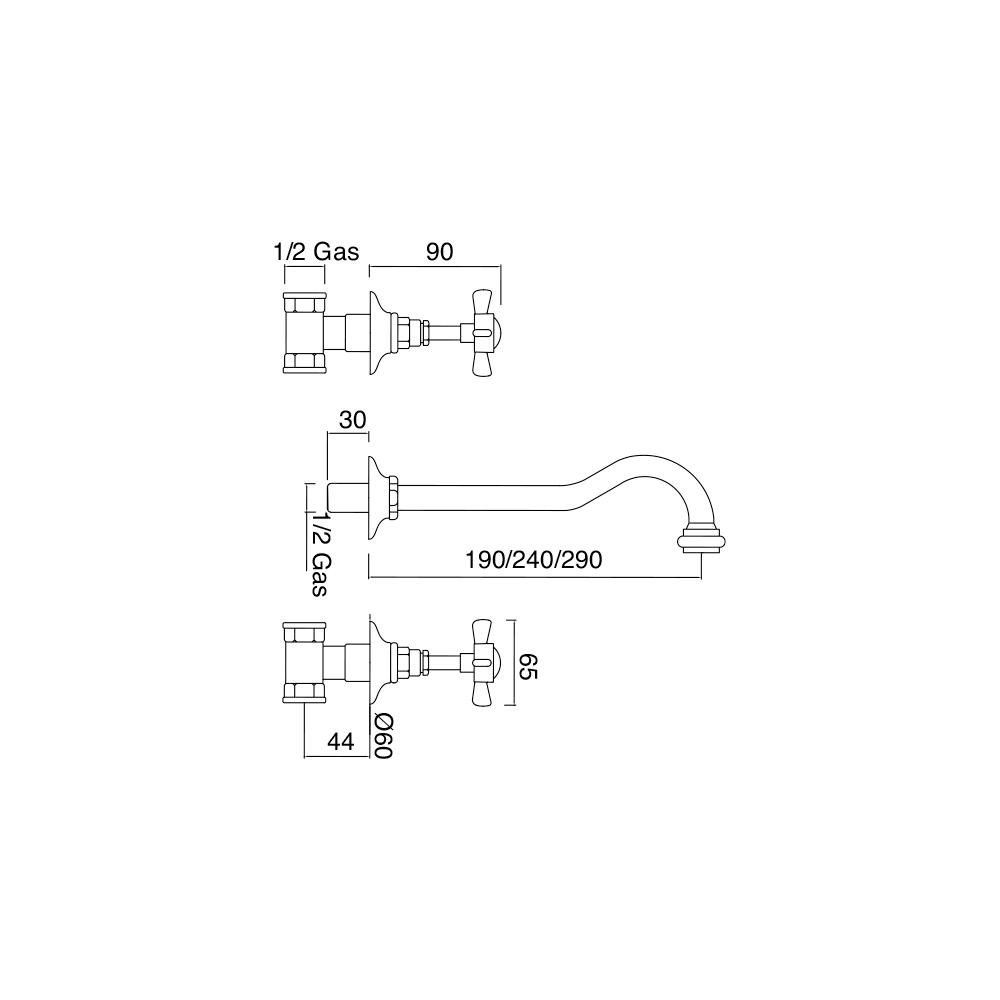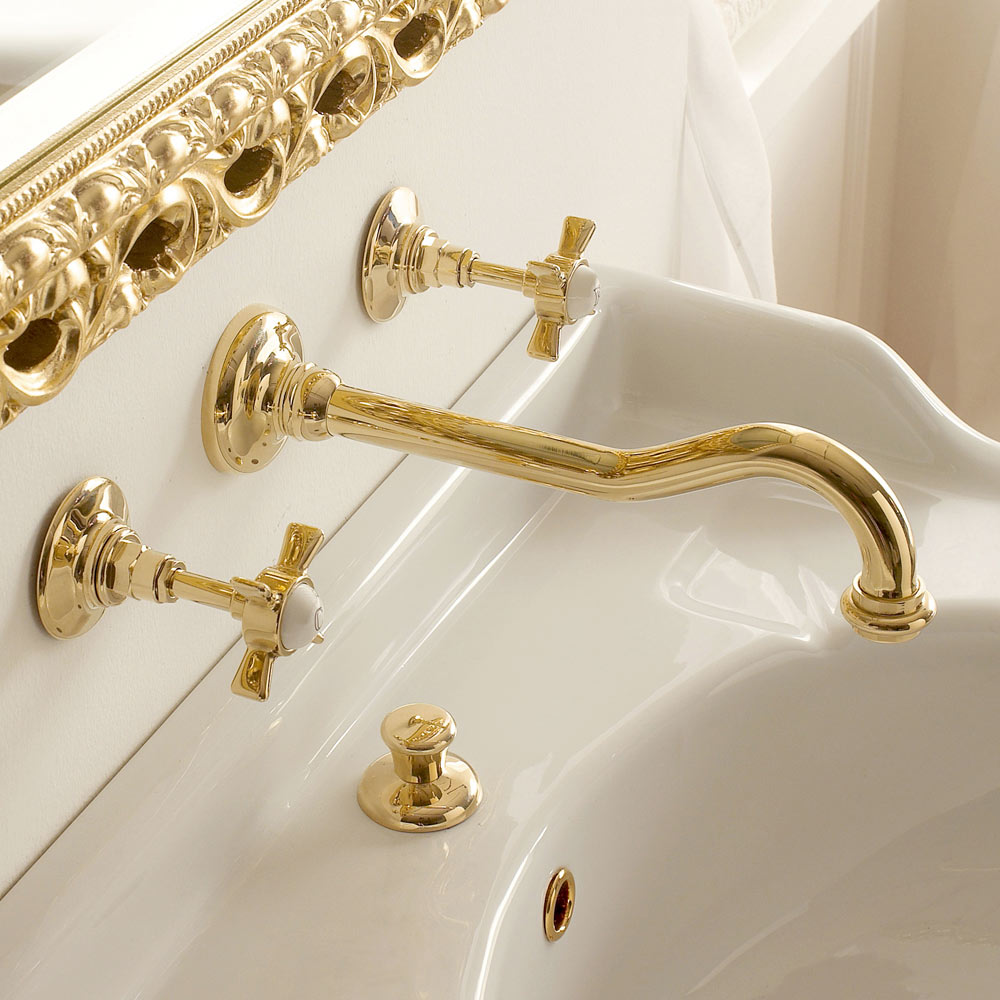 Robinetterie murale pour lavabo ou évier en laiton Katerina, fabriquée en Italie.