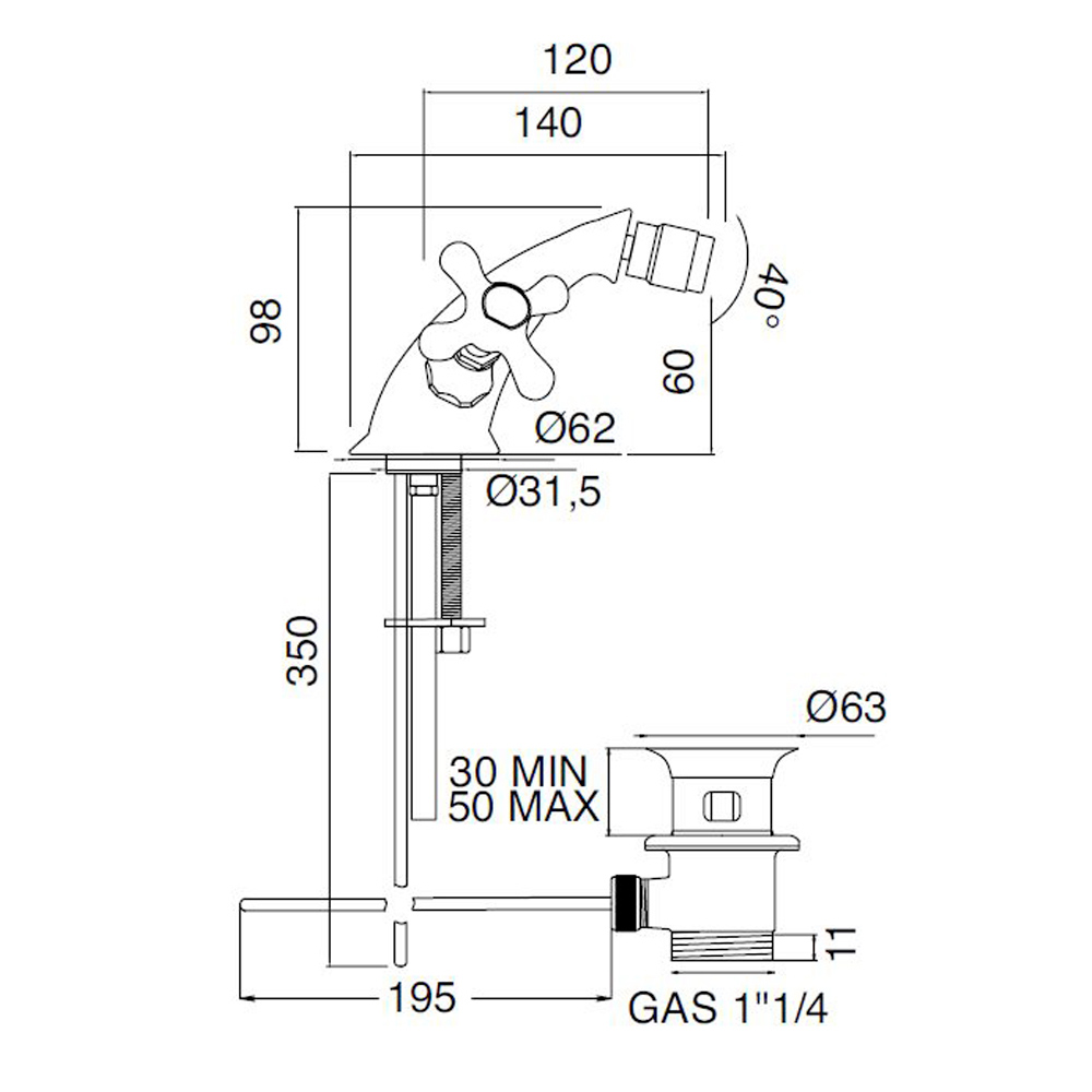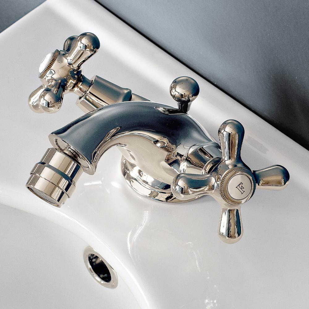 Robinet de bidet monotrou avec chasse d'eau en laiton fabriquée à la main en Italie.