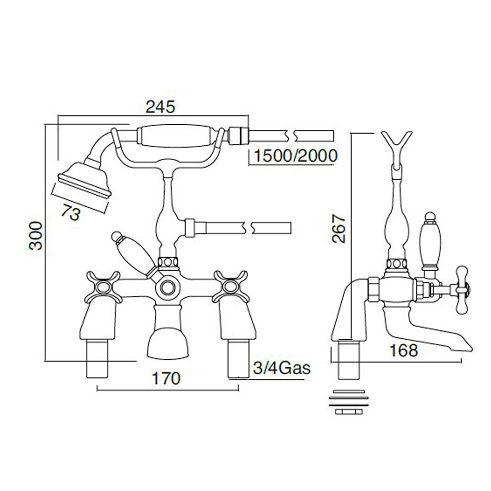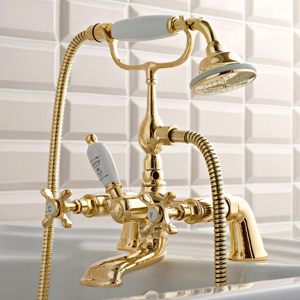 Robinet de baignoire classique en laiton avec douchette, de haute qualité, fabriqué en Italie.