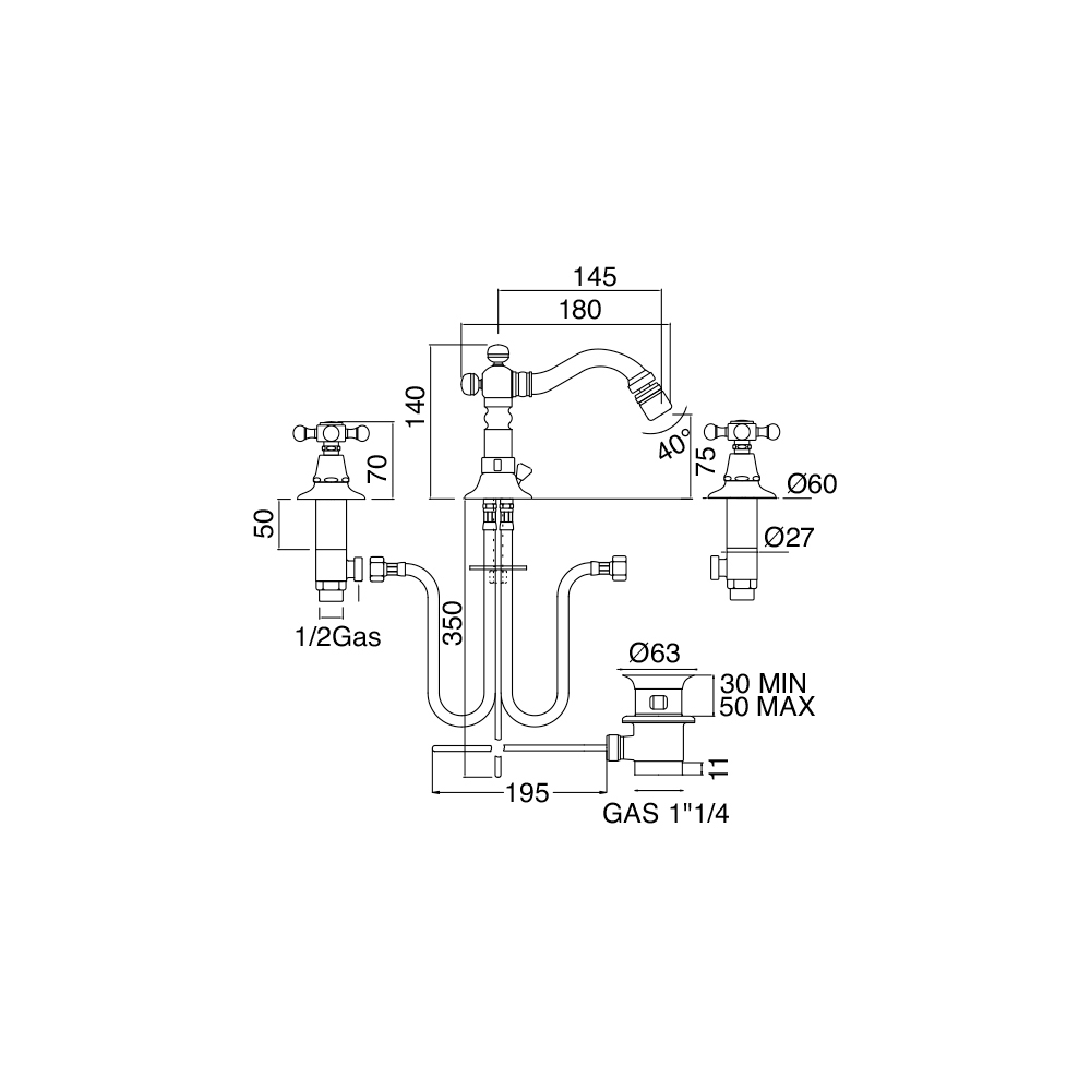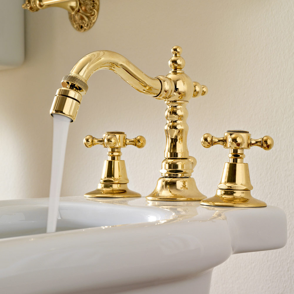 Robinet de bidet 3 trous au design vintage fabriqué en Italie en laiton.