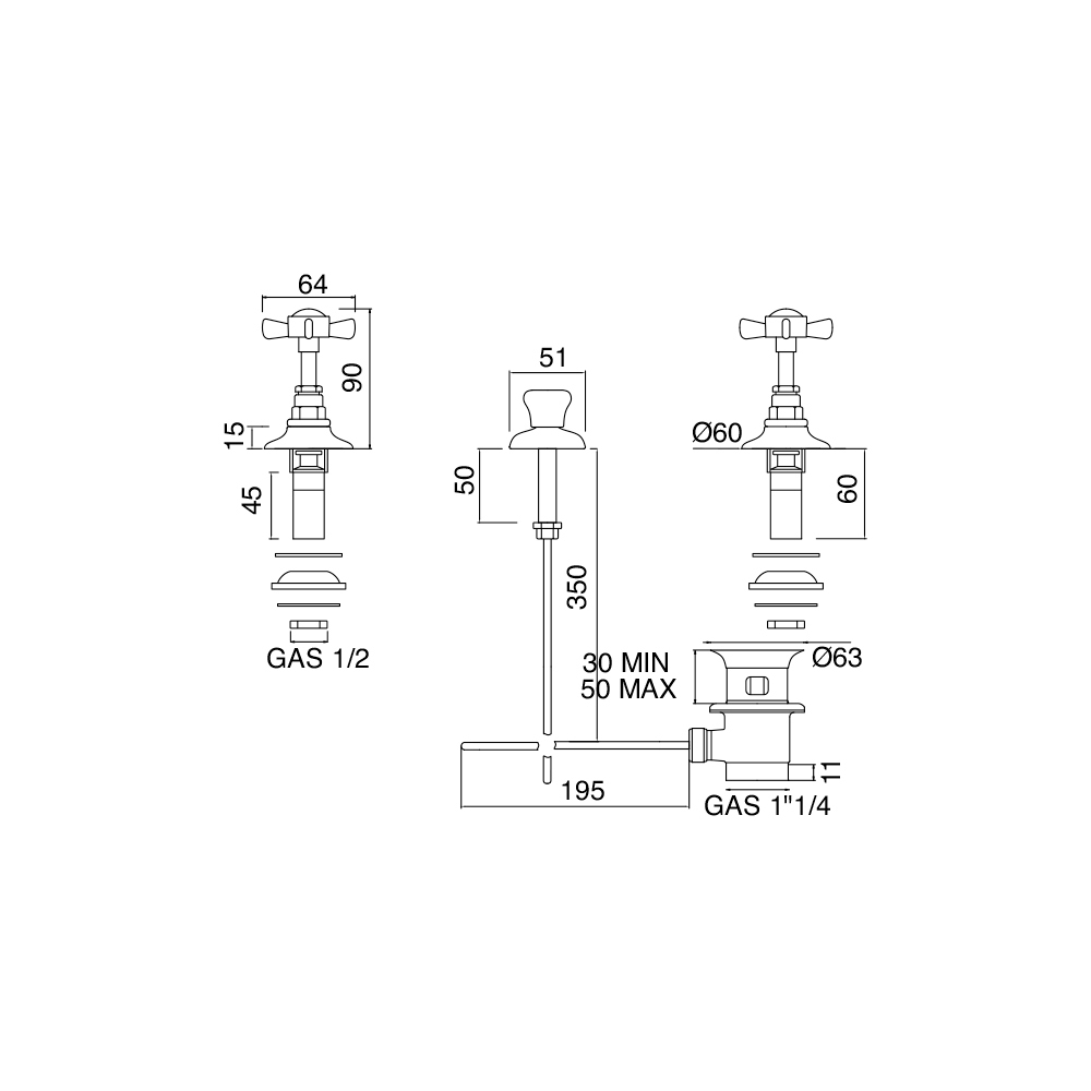 Katerina est un délicat bidet robinet 3 trous avec vidange et bec interne.