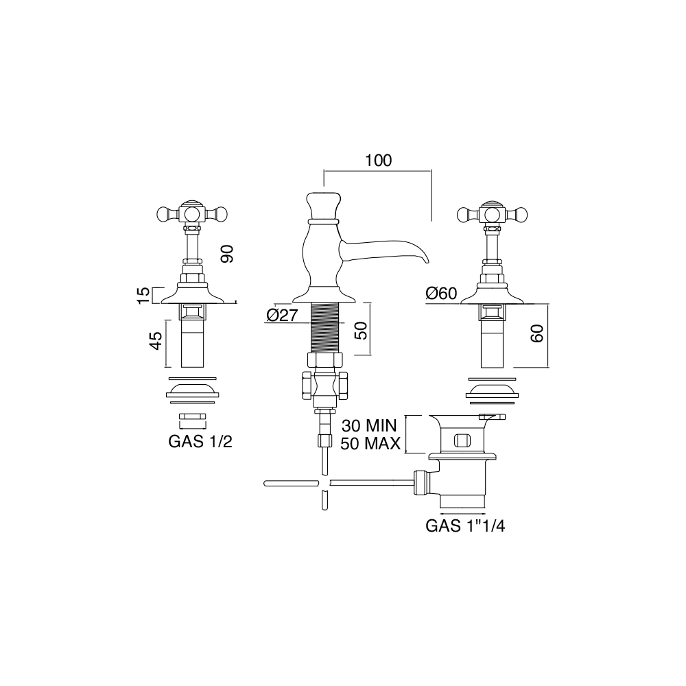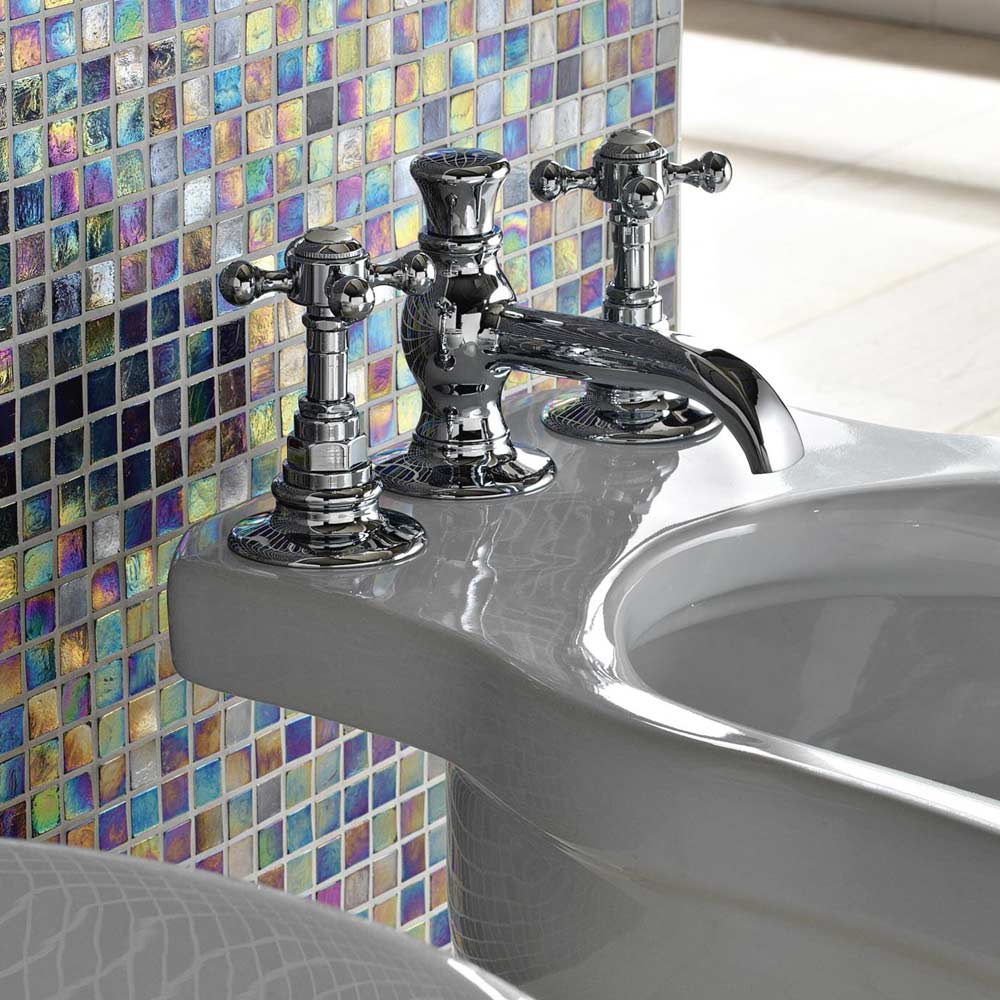Robinet de bidet 3 trous en laiton de design vintage Elisea, fabriqué en Italie.
