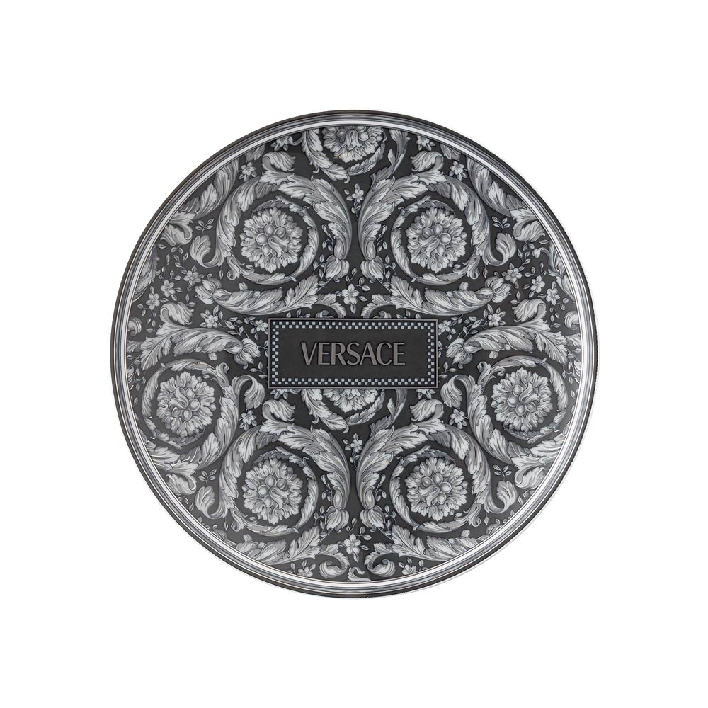 Cette assiette en porcelaine unique capture l'essence du luxe et de l'élégance avec son design complexe de fleurs et de volutes. Le motif floral dans les tons de gris et de noir ajoute une profondeur visuelle étonnante, faisant de cette assiette non seulement un objet fonctionnel mais aussi une véritable œuvre d'art à exposer.