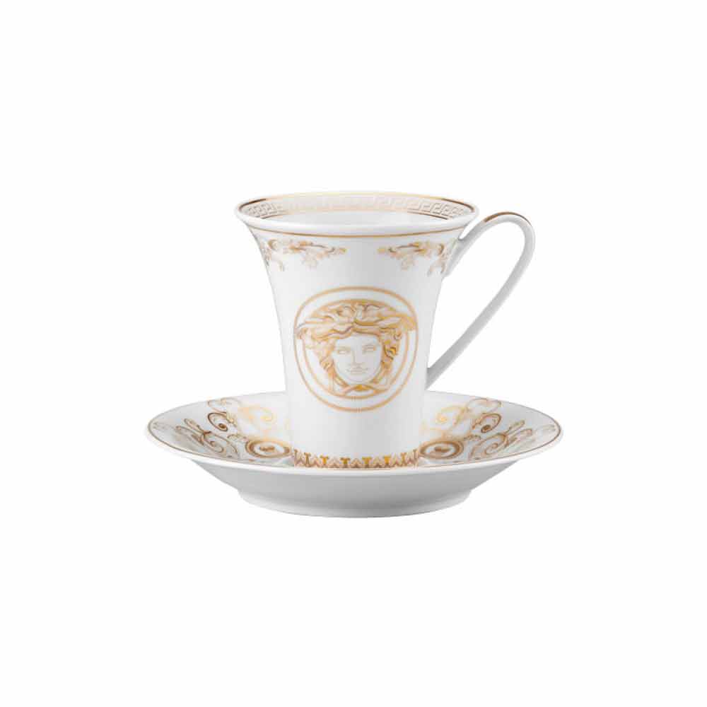 Tasse à café en porcelaine design Medusa Gala de Rosenthal Versace La fantastique et design grande tasse à café avec soucoupe de Versace fait partie de la collection de table raffinée et luxueuse Medusa Gala. Inspirée par l'opulence et l'atmosphère unique des dîners de gala, Medusa Gala réinterprète les motifs traditionnels de Versace dans le design et la décoration : la représentation iconique de la Méduse alterne avec des ornements baroques raffinés dans un précieux filigrane d'or. Un effet de contraste passionnant entre la blancheur de la porcelaine et l'or pur donne vie à une mise en place parfaite, moderne et en même temps unique. Enrichie de motifs et de décorations entièrement en or, Medusa Gala se décline dans une version « Gold » encore plus luxueuse, parfaite pour intégrer et embellir davantage la table.