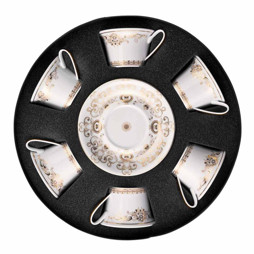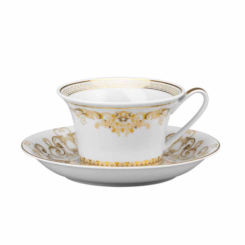 Ensemble de 6 tasses à thé en porcelaine Medusa Gala de Versace Ce set de 6 tasses à thé renferme tout le raffinement et le luxe de la nouvelle collection de vaisselle Medusa Gala , qui réinterprète dans son design et sa décoration les motifs traditionnels de Versace : l'icône représentant Medusa alterne avec des ornements baroques raffinés dans un précieux filigrane doré. Un effet de contraste passionnant entre la blancheur de la porcelaine et l'or pur donne vie à une mise en place parfaite, moderne et en même temps singulière. Enrichie de motifs et de décorations entièrement en or, Medusa Gala existe également dans la version « Gold » encore plus luxueuse, parfaite pour intégrer et embellir davantage la table.