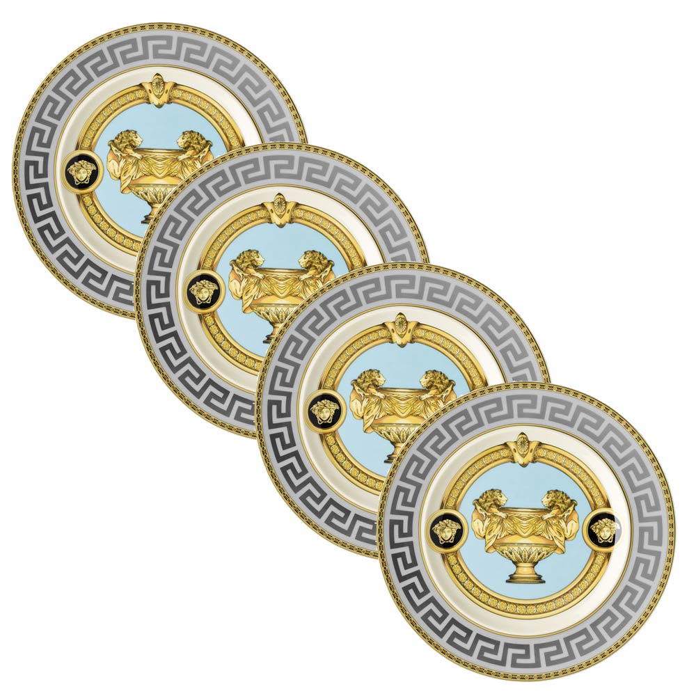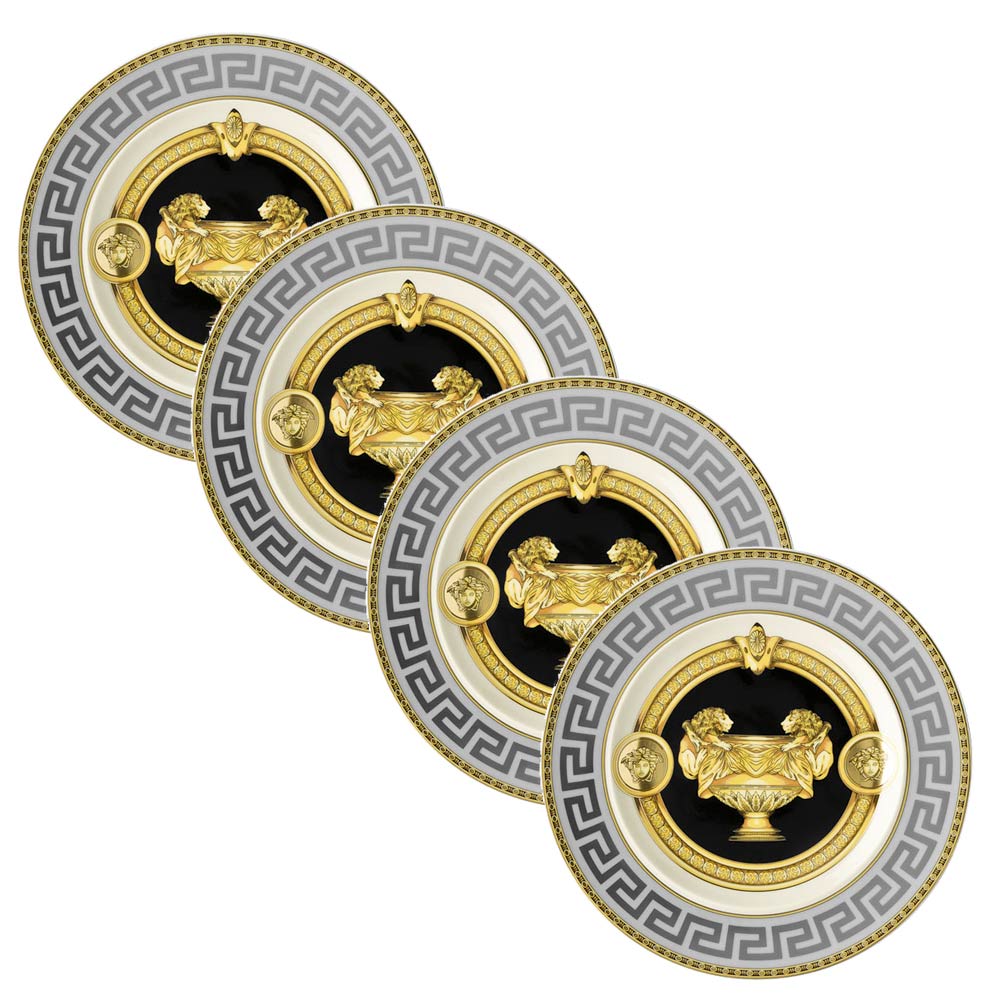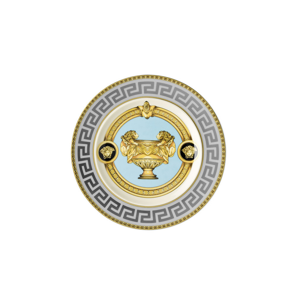 L' assiette à pain Versace Prestige Gala , réalisée en porcelaine fine , est une représentation parfaite du luxe et de l'élégance intemporelle . Le design sophistiqué présente une décoration centrale avec une amphore dorée , symbole de royauté et de tradition, encadrée par un motif grec audacieux et des détails dorés qui capturent l'essence de la maison. Disponible sur fond noir ou bleu clair, il offre un choix de style pour chaque occasion.