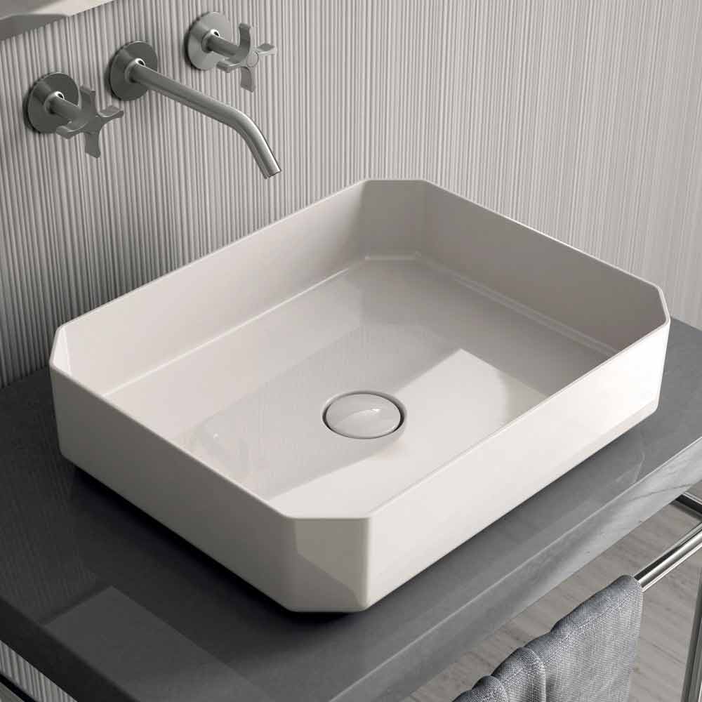 Zulimo est un incroyable évier de comptoir octogonal fabriqué en Italie à la main en poterie.