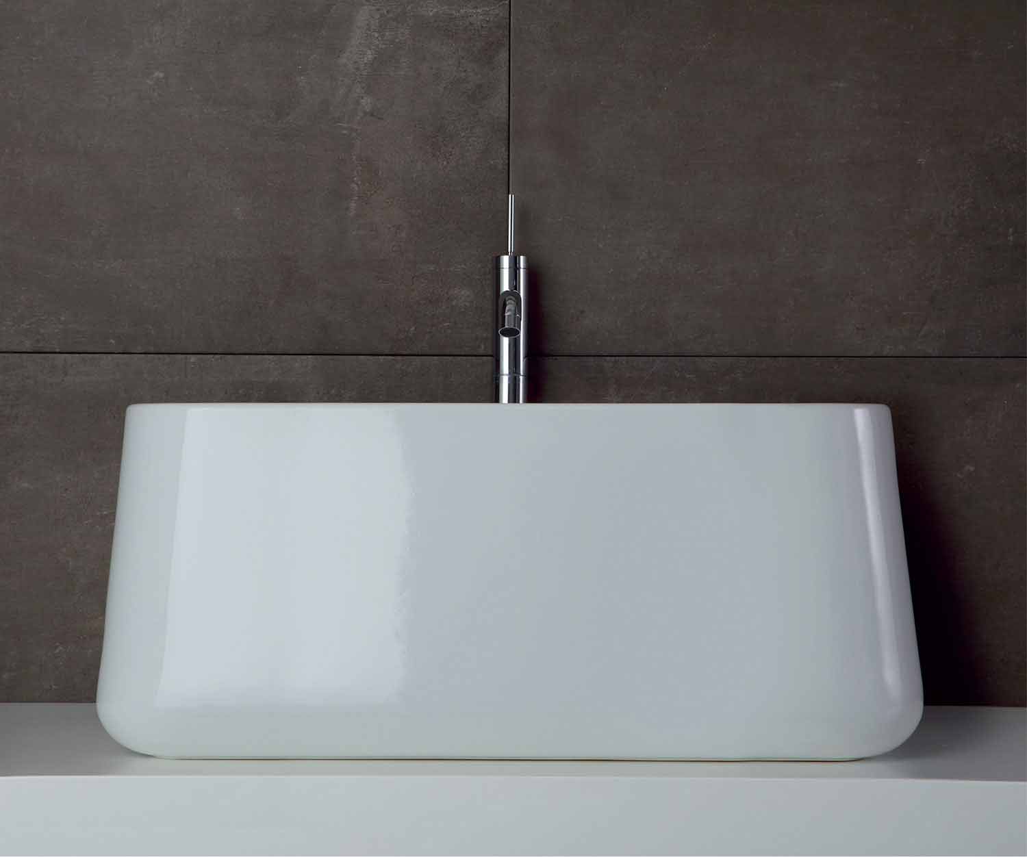 La vetrochina est un type particulier de céramique émaillée cuite à 1200° et, grâce à ses qualités, elle est particulièrement adaptée à la production d'articles sanitaires. Il s'agit en effet d'un matériau hygiénique et facile à nettoyer, résistant aux chocs, aux rayures, à la chaleur et aux acides, et qui ne se décolore pas avec le temps. La transformation experte de ce matériau, qui a lieu entièrement en Italie, permet de créer des articles sanitaires extrêmement fonctionnels, tout en ayant un fort impact esthétique. La ligne Oliena se caractérise par une référence aux formes traditionnelles, revisitées dans une tonalité moderne.