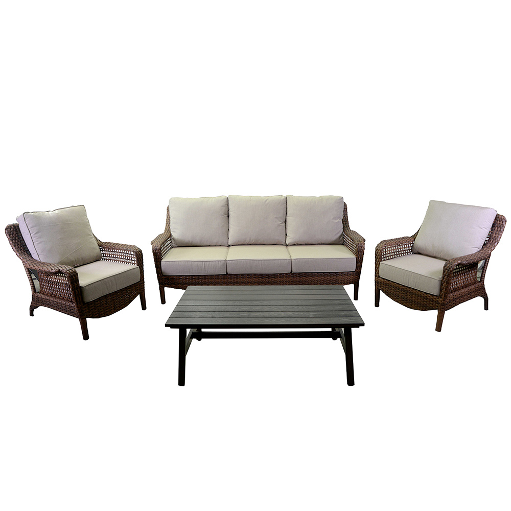 Le rotin synthétique de haute qualité arbore une finition brune qui imite le rotin naturel, ajoutant une touche de chaleur et de sophistication à votre jardin ou à votre patio. Les coussins en tissu cream sont non seulement stylisés mais aussi confortables , parfaits pour de longues séances de détente en famille ou entre amis.