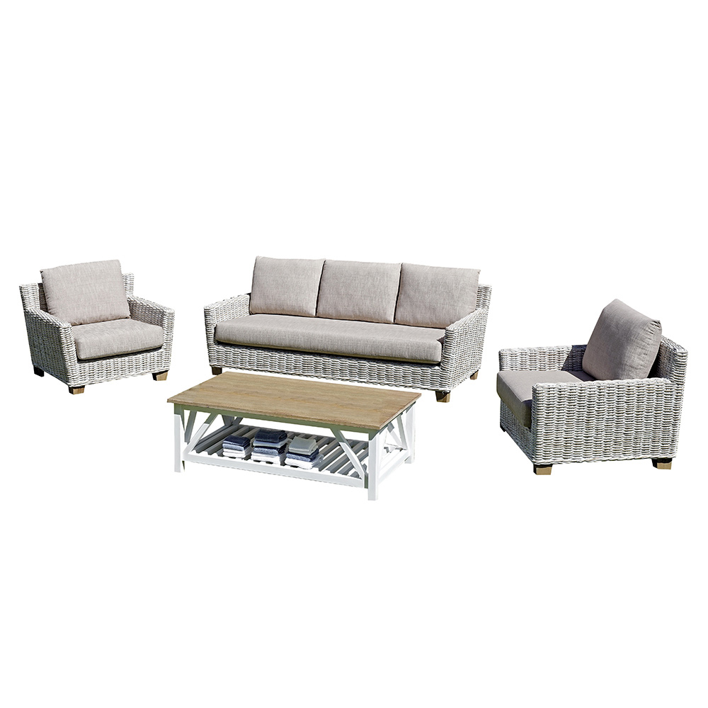 jardin composé de deux fauteuils et un canapé 3 places avec structure en f