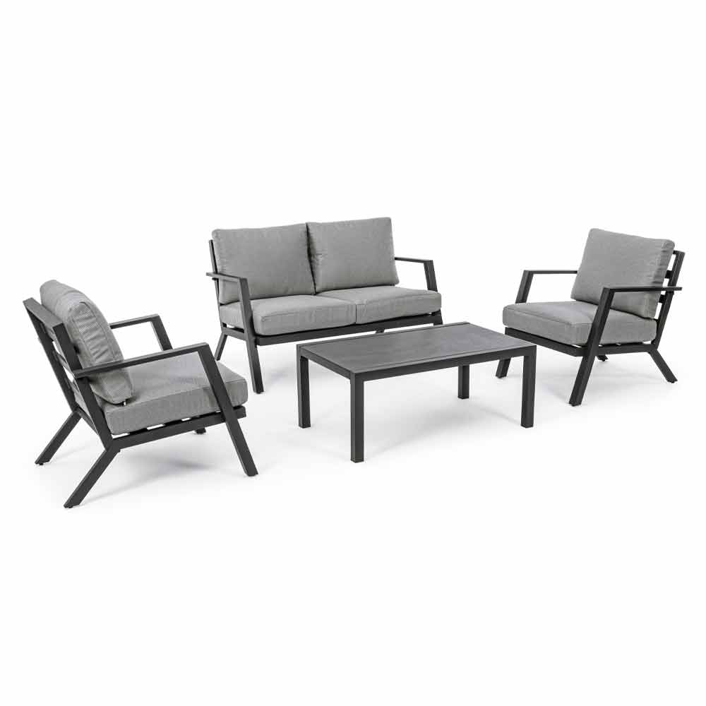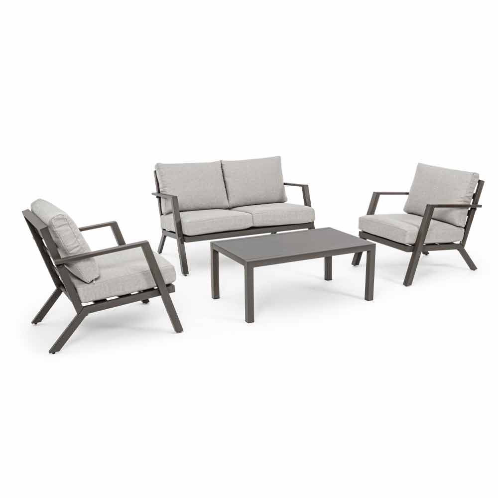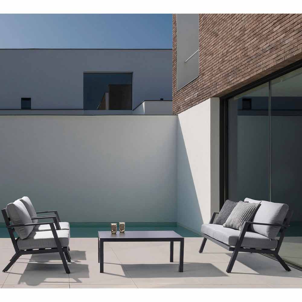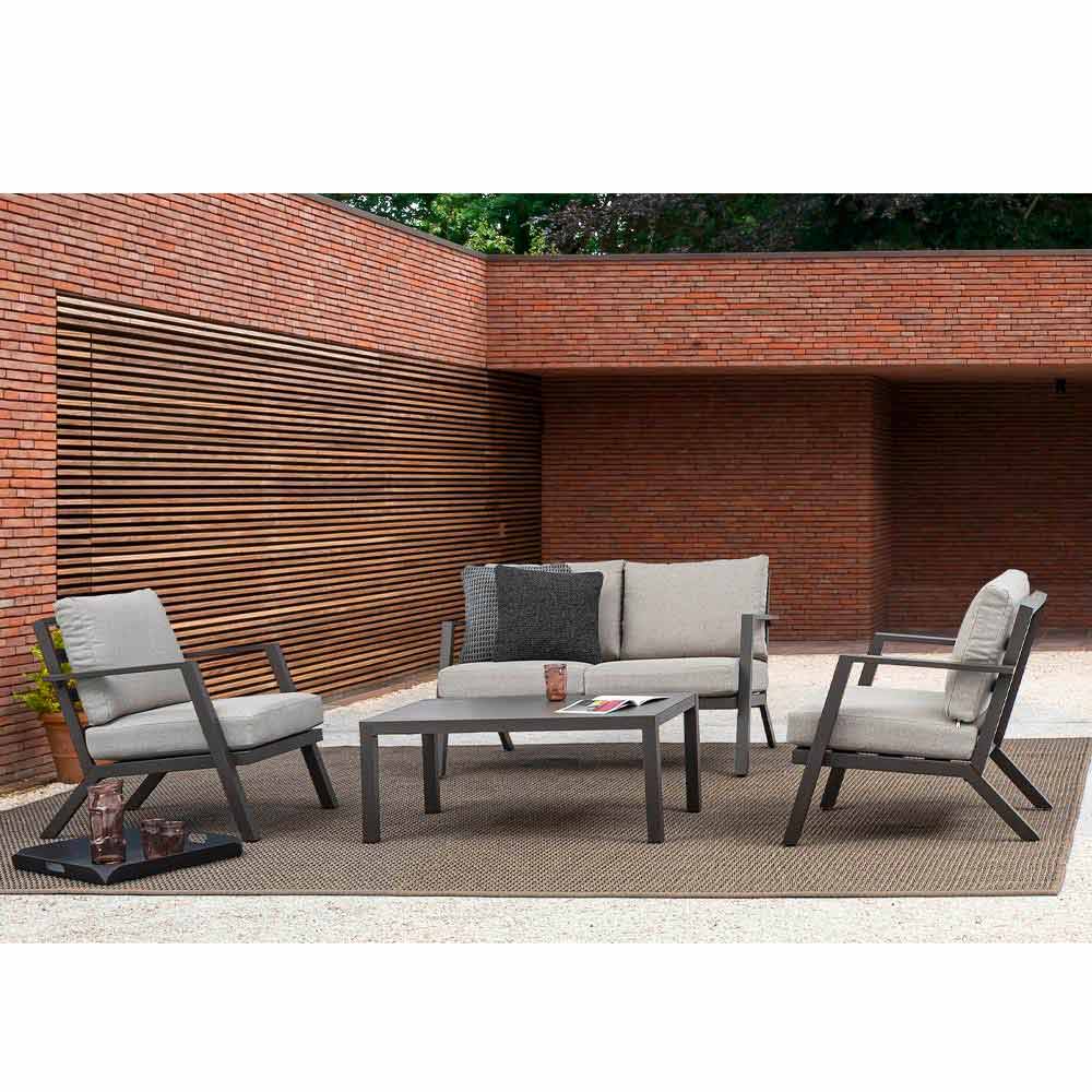 Salon d'extérieur en aluminium avec coussins recouverts de tissu - Armonia