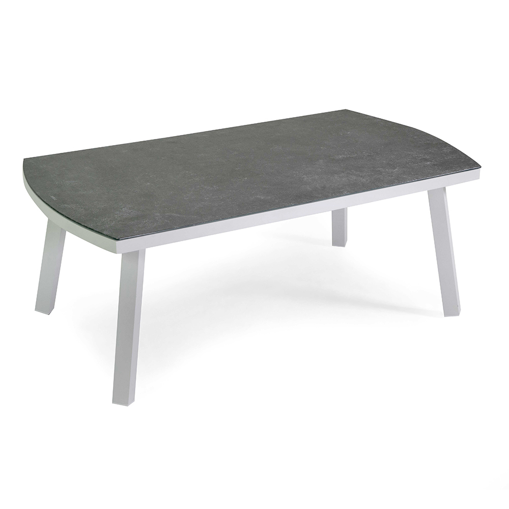 1 table basse : châssis en aluminium antirouille peint par poudrage en blanc et plateau en verre imprimé en 3D.