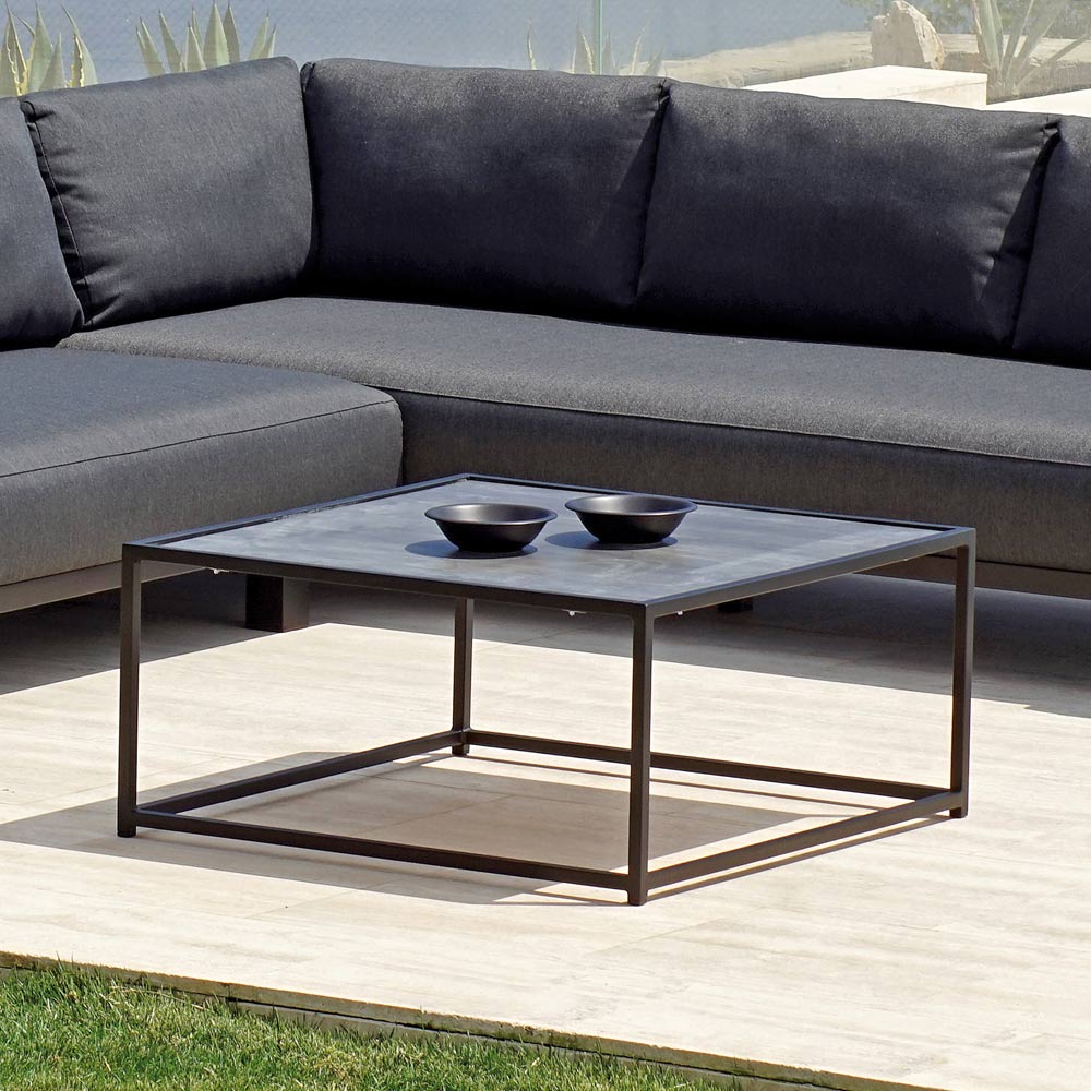 Salon d'extérieur en aluminium noir avec table basse en céramique - Ghislain