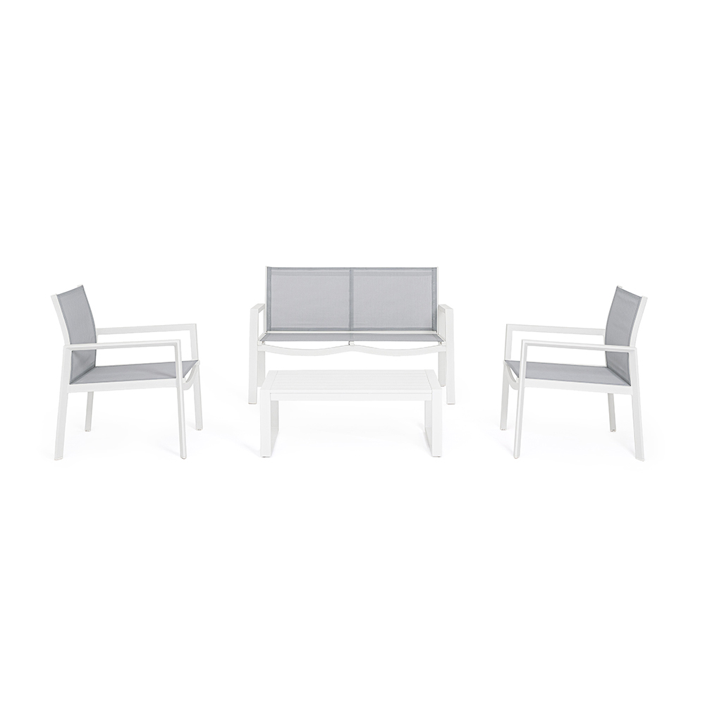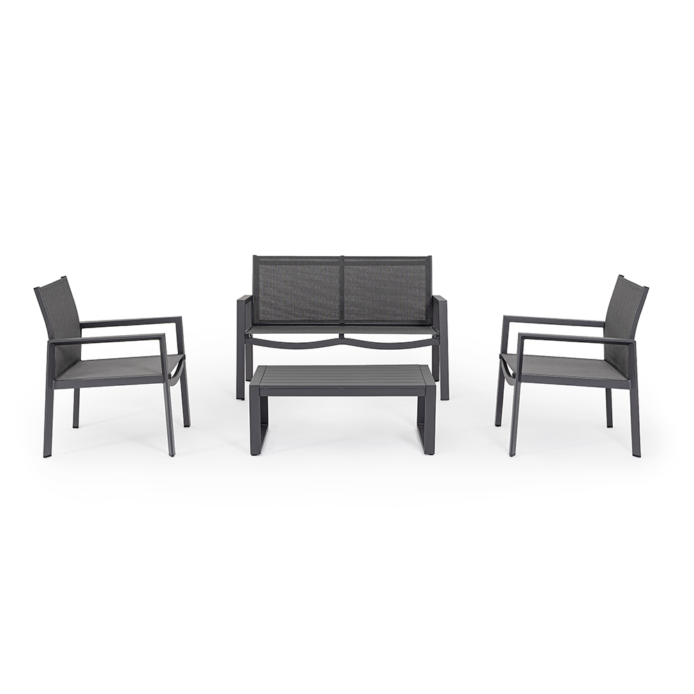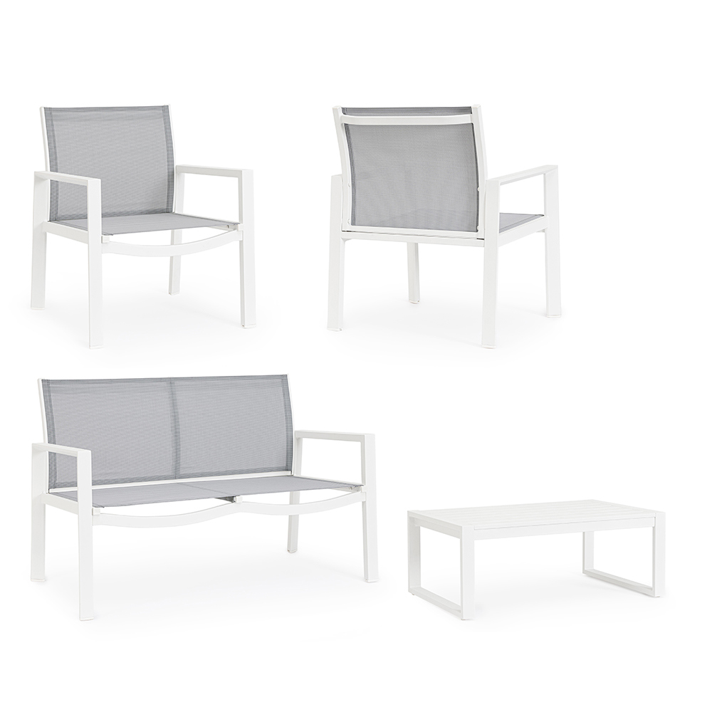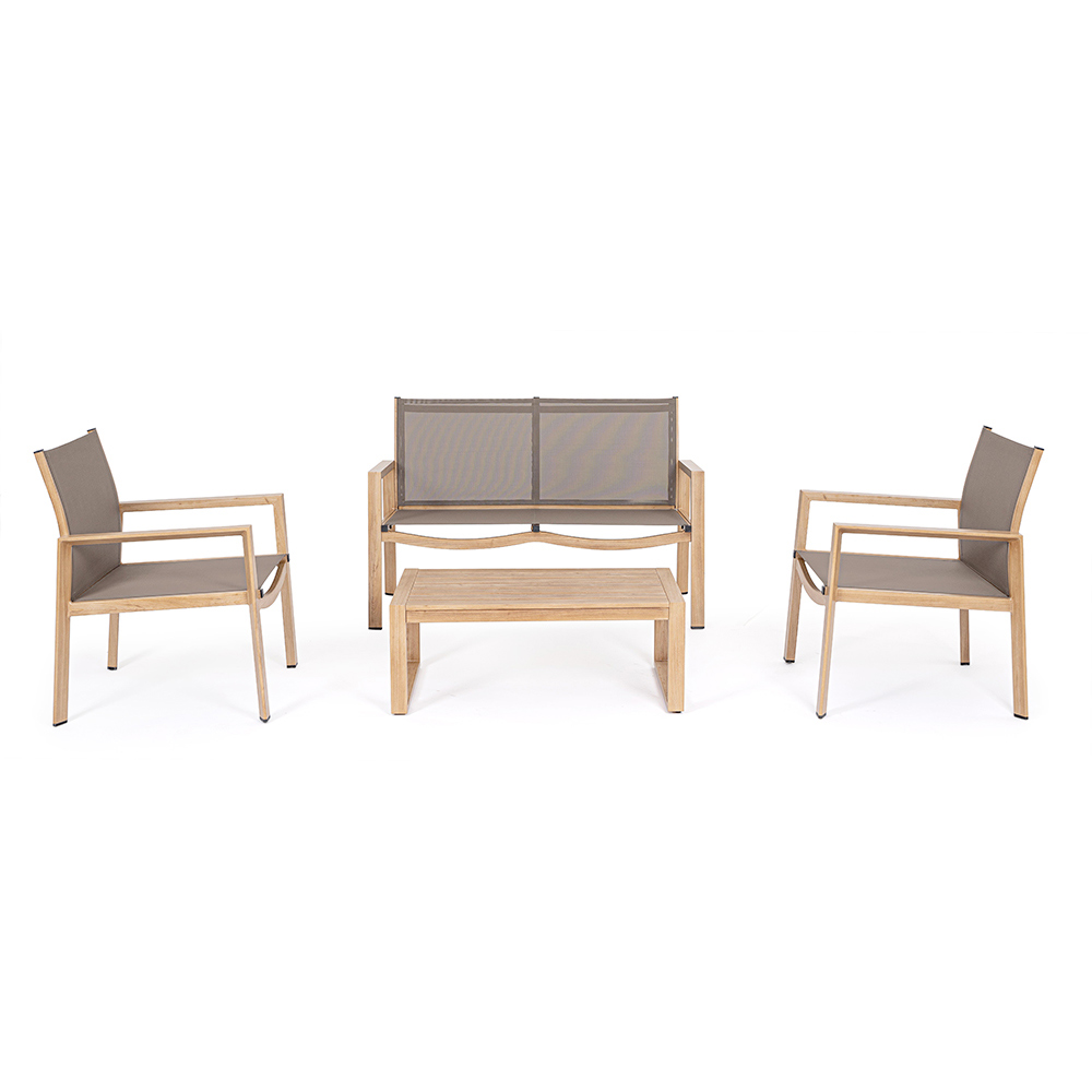 L'ensemble comprend 2 fauteuils avec accoudoirs et un canapé deux places , qui promettent détente et durabilité , idéal pour profiter de longues heures de conversation ou pour se plonger dans la lecture d'un livre sous le ciel. La table basse assortie complète l'ensemble, offrant la surface idéale pour garder des boissons, des collations ou votre livre préféré à portée de main.