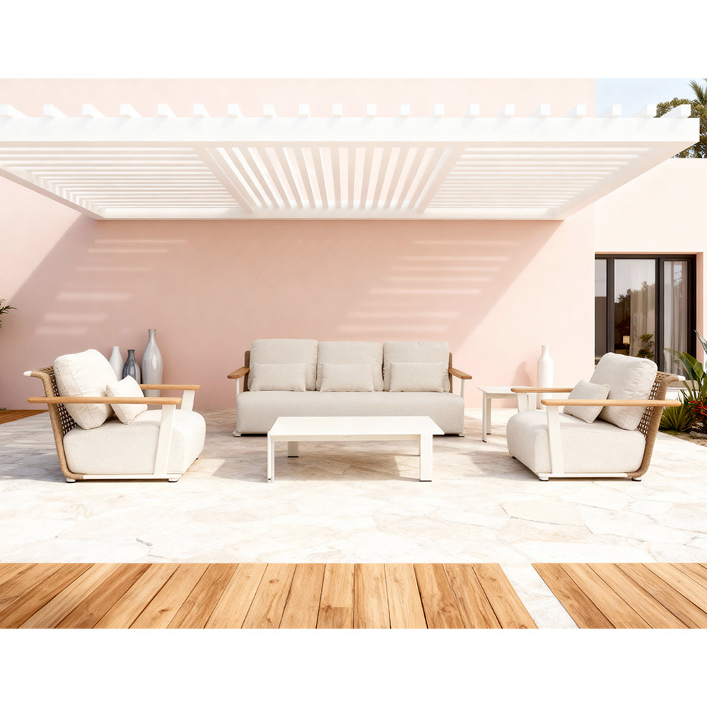 C'est un salon conçu pour ceux qui souhaitent profiter des espaces extérieurs avec style, qualité et durabilité – parfait pour se détendre, prendre l'apéritif entre amis ou accueillir des invités avec un design qui parle de lui-même.