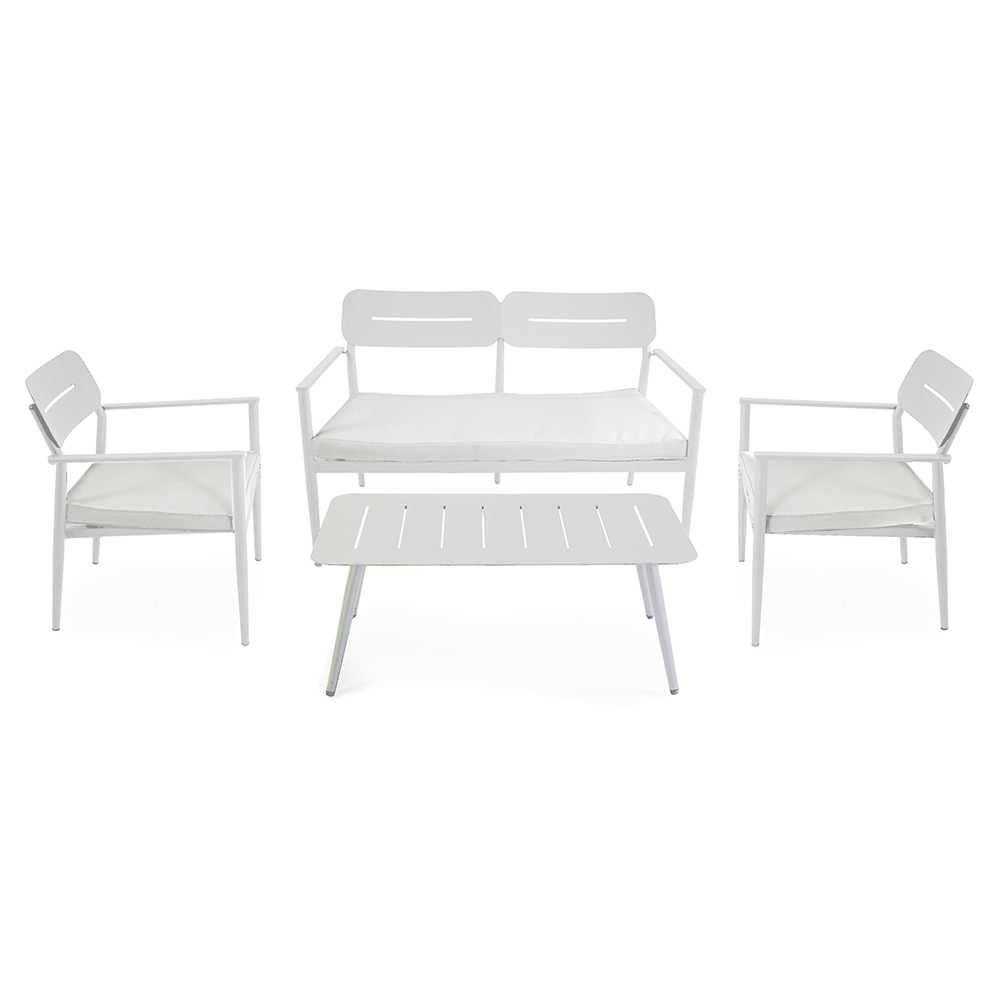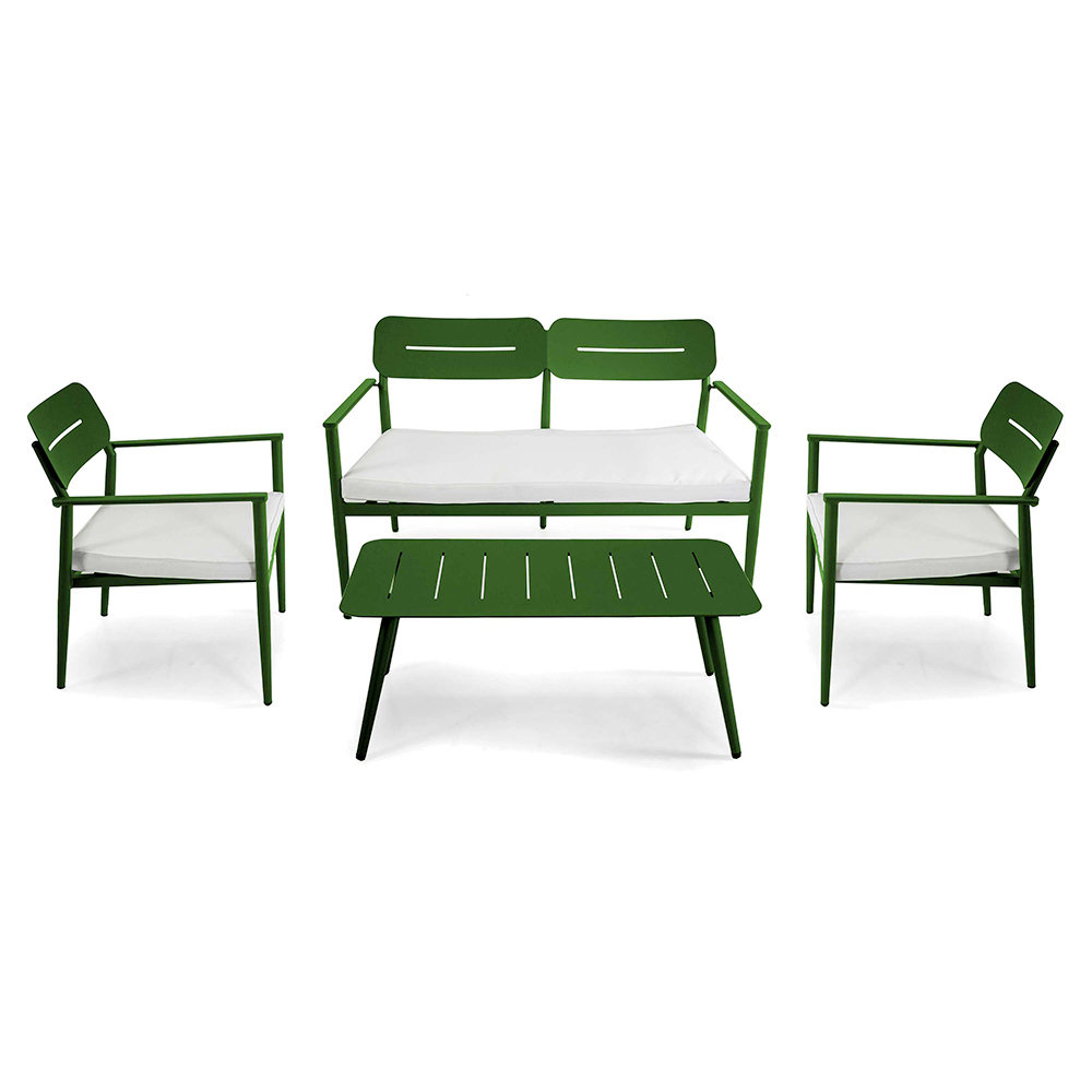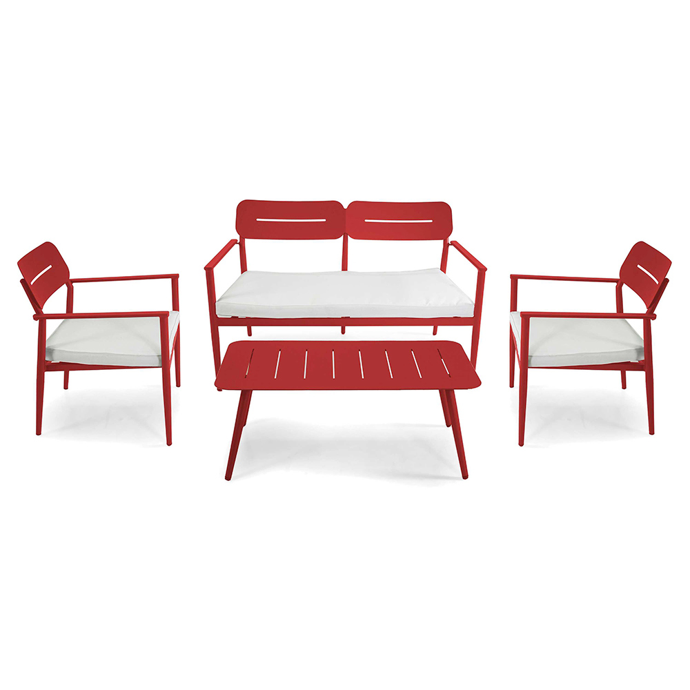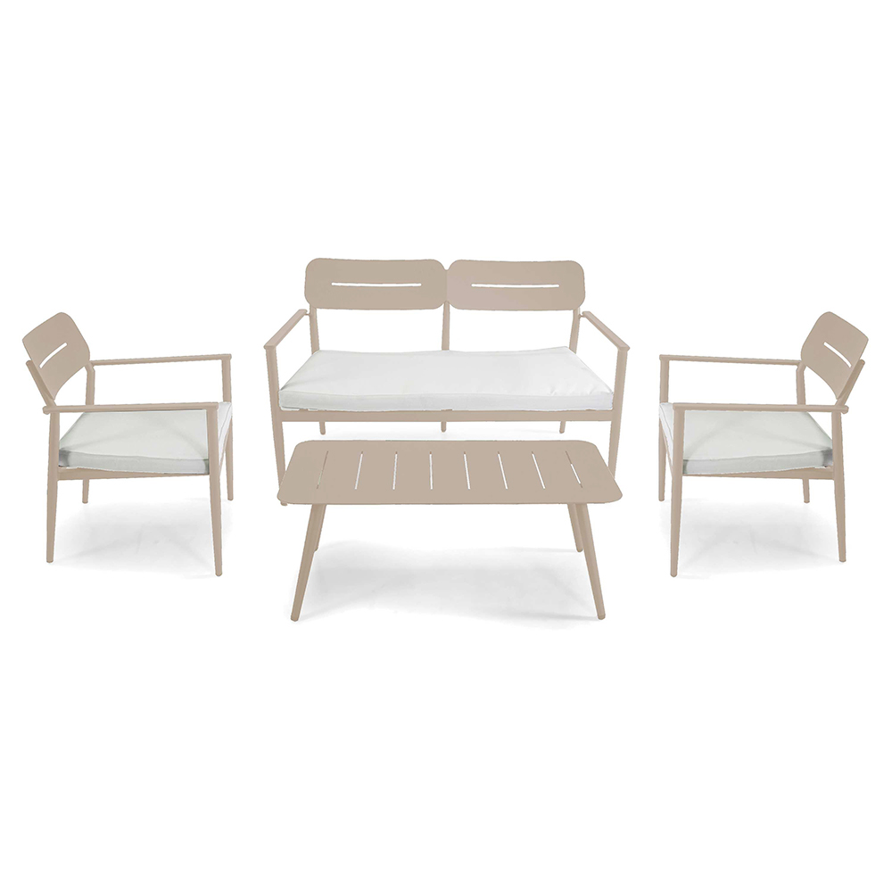 Ce salon d'extérieur allie fonctionnalité et style moderne , parfait pour ceux qui souhaitent aménager les espaces extérieurs avec goût. La cadre en aluminium est à la fois élégante et robuste, garantissant une longue durée de vie et un entretien facile. Chaque élément de l'ensemble est conçu pour offrir un maximum de confort, du fauteuil avec son dossier ergonomique, au spacieux sofa avec des coussins doux et accueillants.