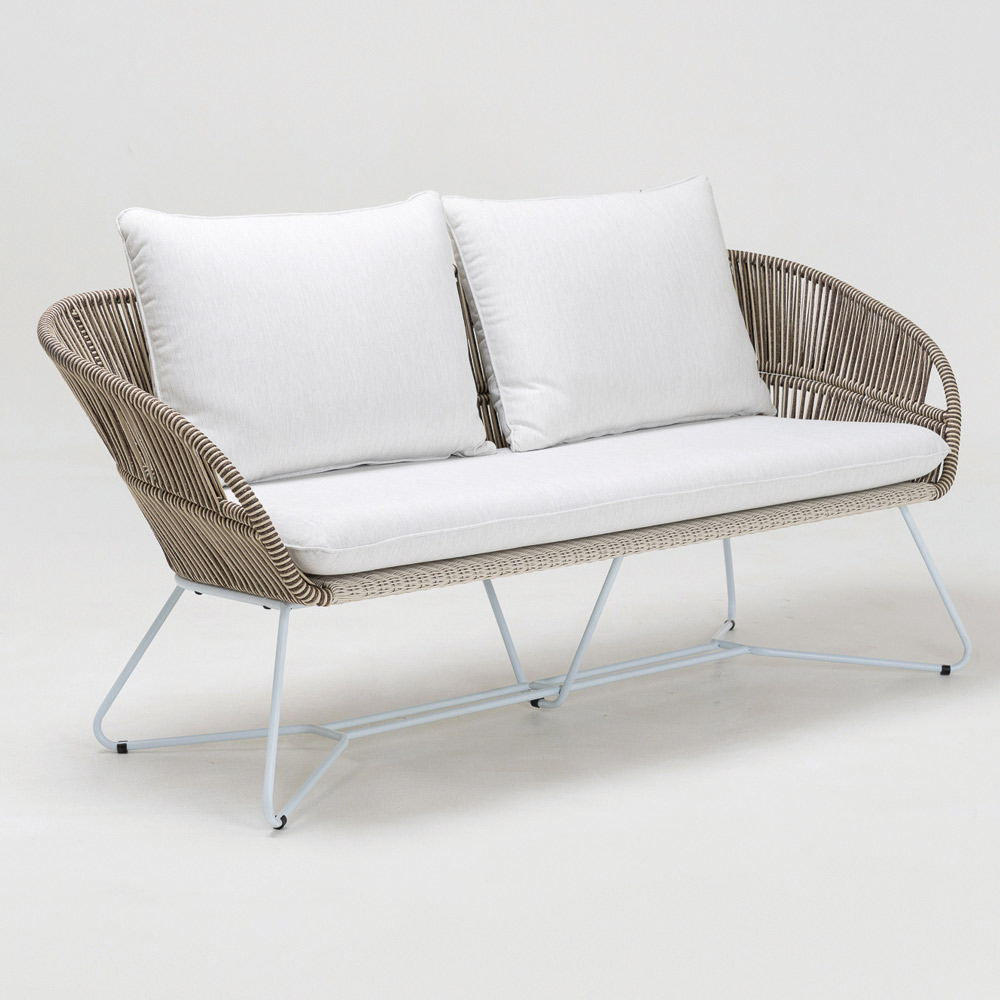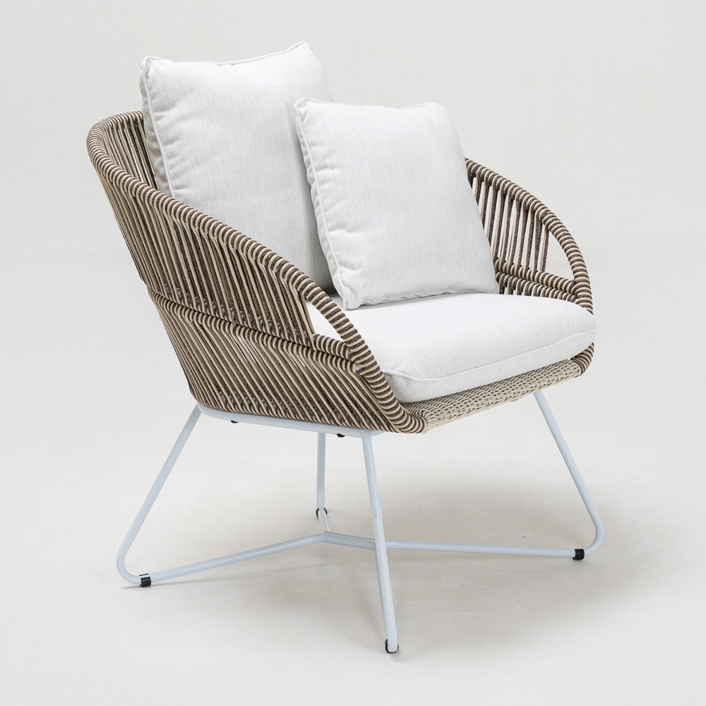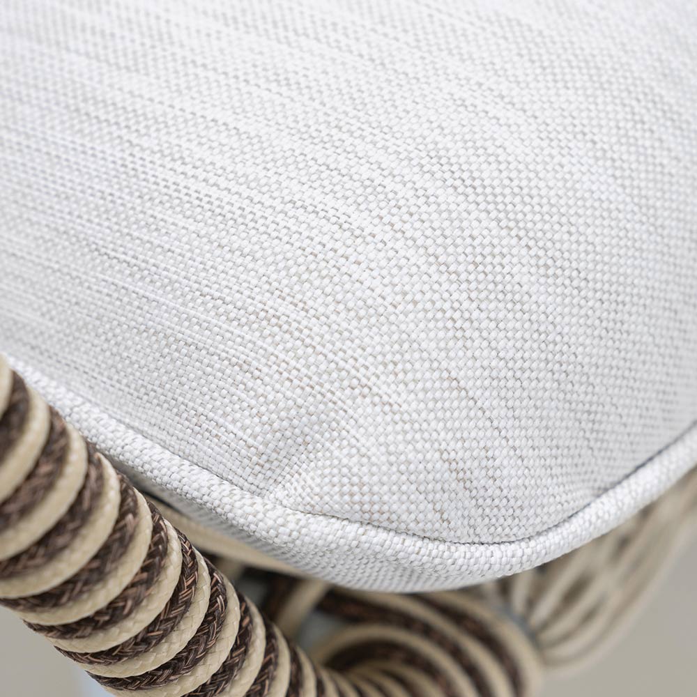 trame Olefin/PP ROPE avec une finition bicolore blanc perle et cappuccino et coussin d'assise et de dossier en